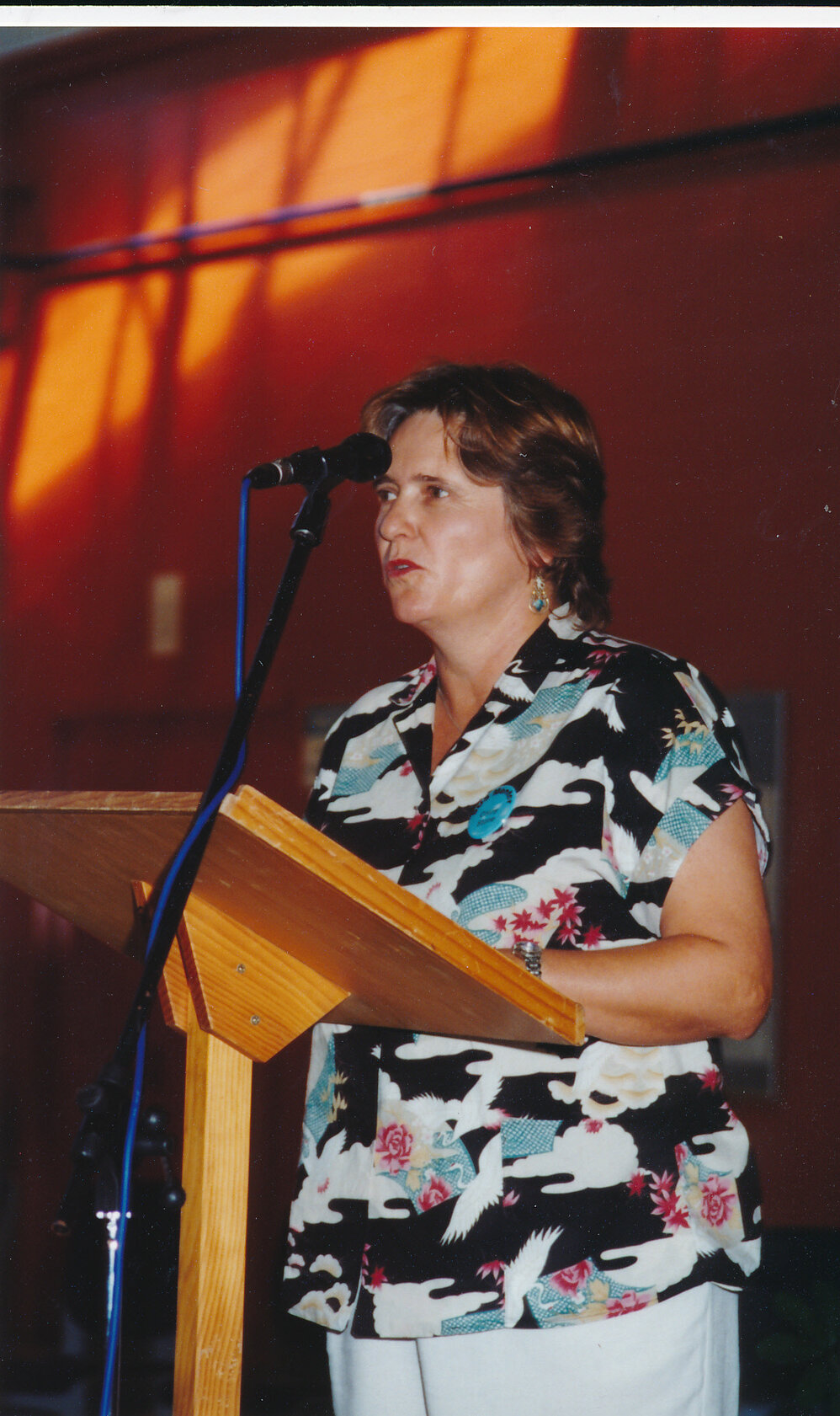 Unidentified person speaking at the 2001 Central Coast Campus Commencement Ceremony.