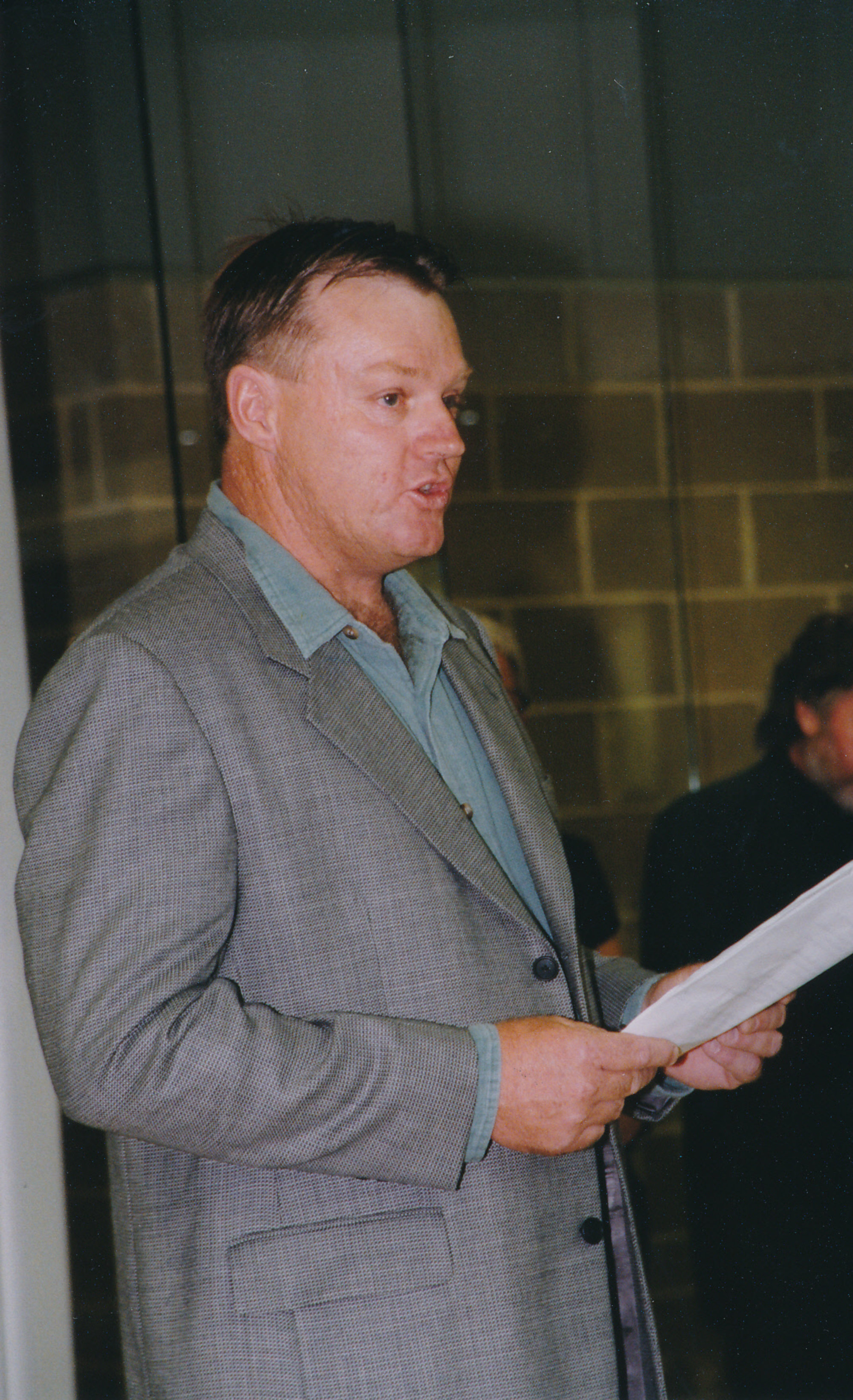 Unidentified person speaking at a Central Coast Campus art exhibition [n.d.]., [B008_IMG3952]. Living Histories, accessed 24/01/2026, https://livinghistories.newcastle.edu.au/nodes/view/26412