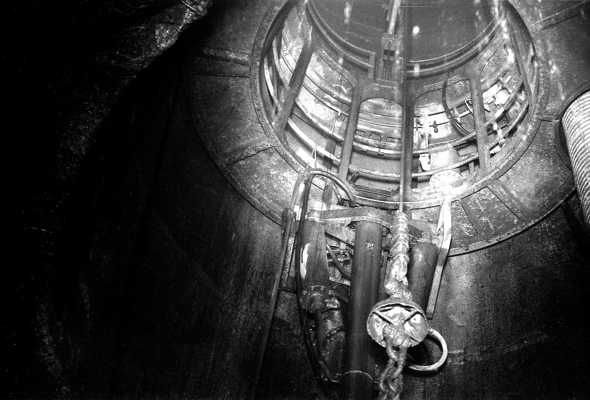 Staging (work platform) in the bottom of downcast shaft, West Wallsend No. 2 Colliery, Killingworth, NSW, 8 June 1972