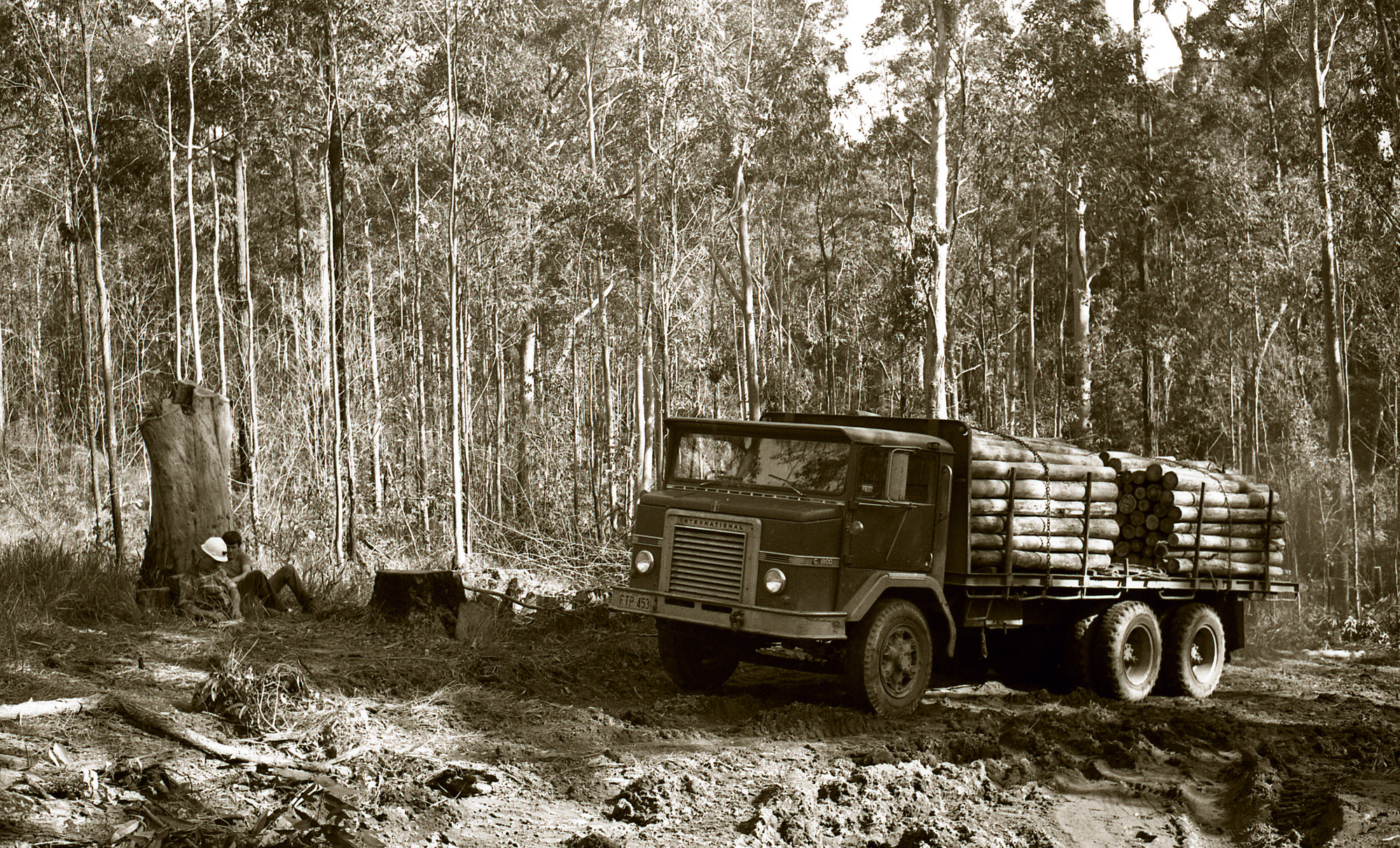 Lockett, Phillip, Lunch time. R.H. Crockett's timber truck with a load of pit props, Blue Gum Creek, Stockrington, 17 June 1977, [OL_Lockett_084]. Living Histories, accessed 18/03/2026, https://livinghistories.newcastle.edu.au/nodes/view/27013