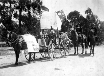[Unknown], Horse drawn vehicle in parade, NSW Central Coast area, [n.d.], [ol_lindner_historicwyong_607]. Living Histories, accessed 18/03/2026, https://livinghistories.newcastle.edu.au/nodes/view/28154