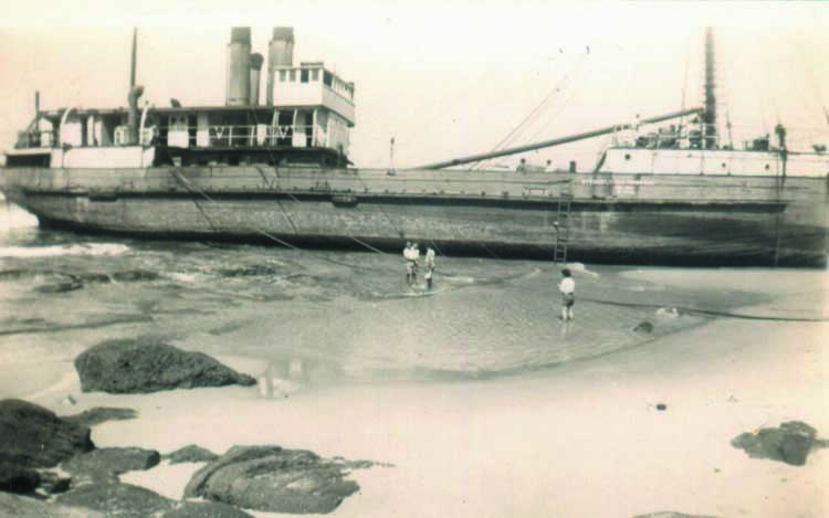 SS Allenwood, (a wooden planked collier which transported coal from Newcastle to Port Kembla), on Birdie Beach, (Central Coast), 14th September 1951.