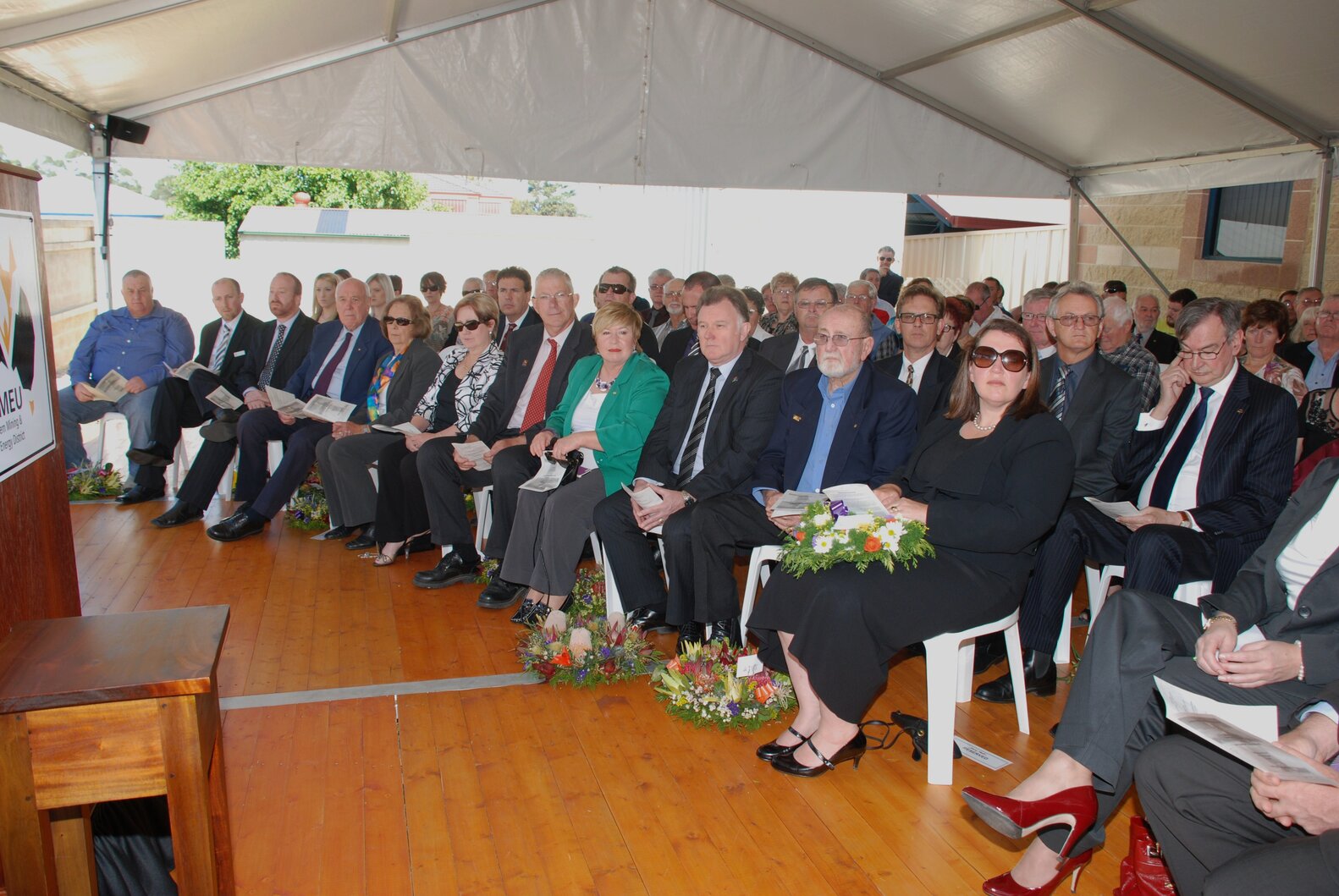 Guests at the memorial service at the Jim Comerford Miners Memorial Wall, Aberdare, NSW, 22 September 2013