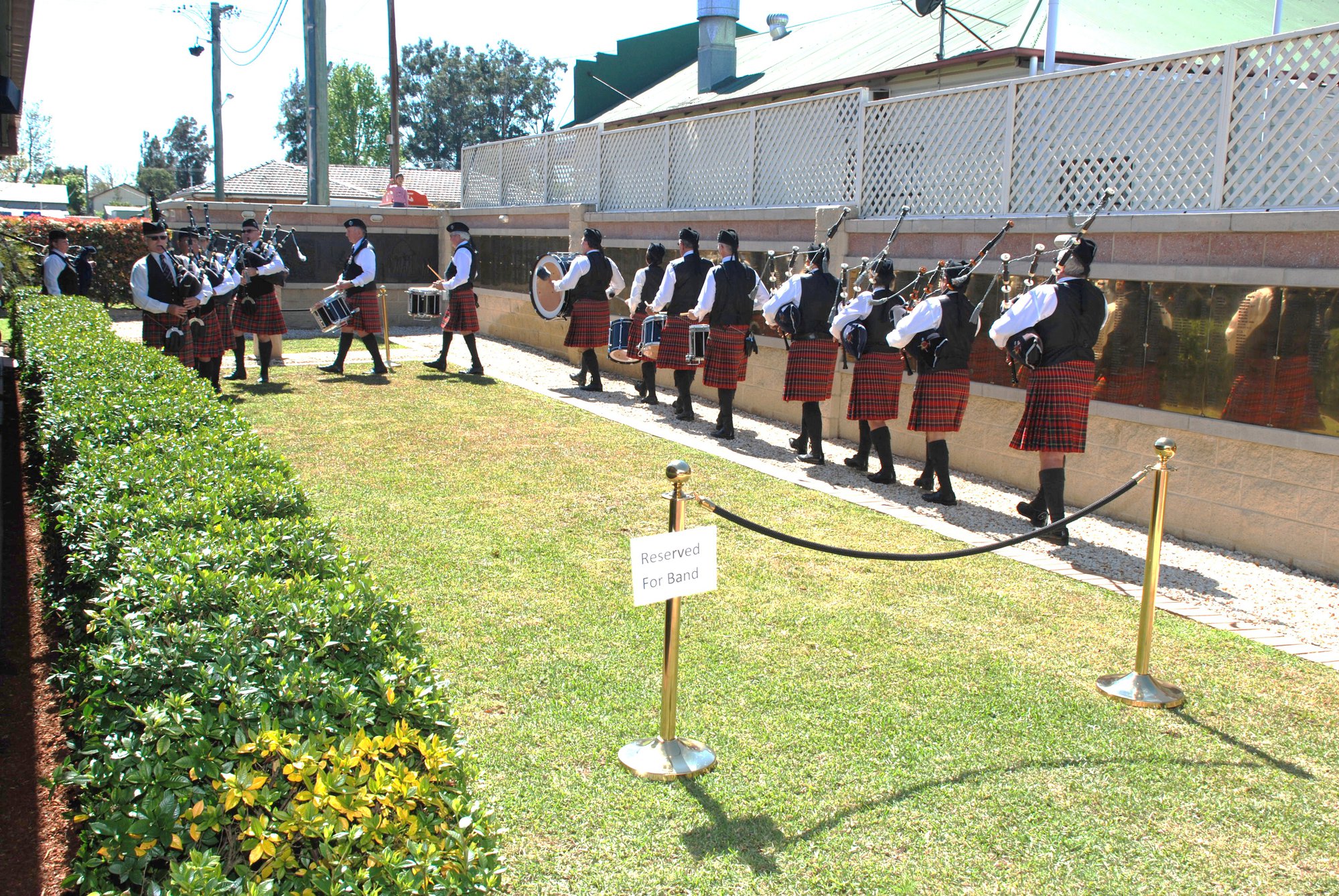 Pipe band at the memorial service at the Jim Comerford Miners Memorial Wall, Aberdare, NSW, 22 September 2013