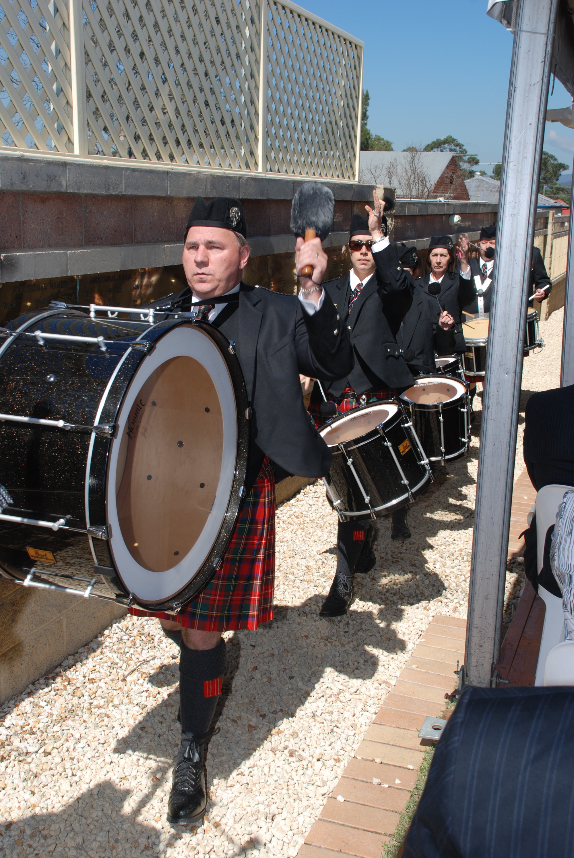 Pipe band at the Memorial Service at the Jim Comerford Miners Memorial Wall, Aberdare, NSW, 2014