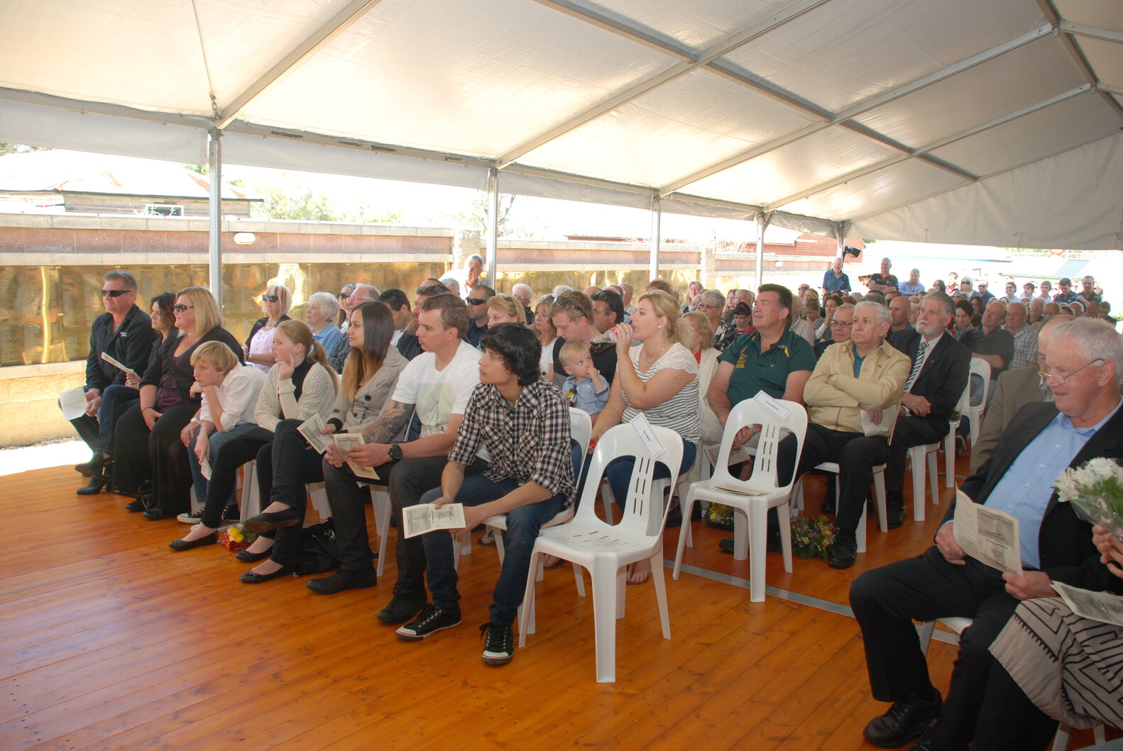 Guests at the Memorial Service at the Jim Comerford Miners Memorial Wall, Aberdare, NSW, 2014
