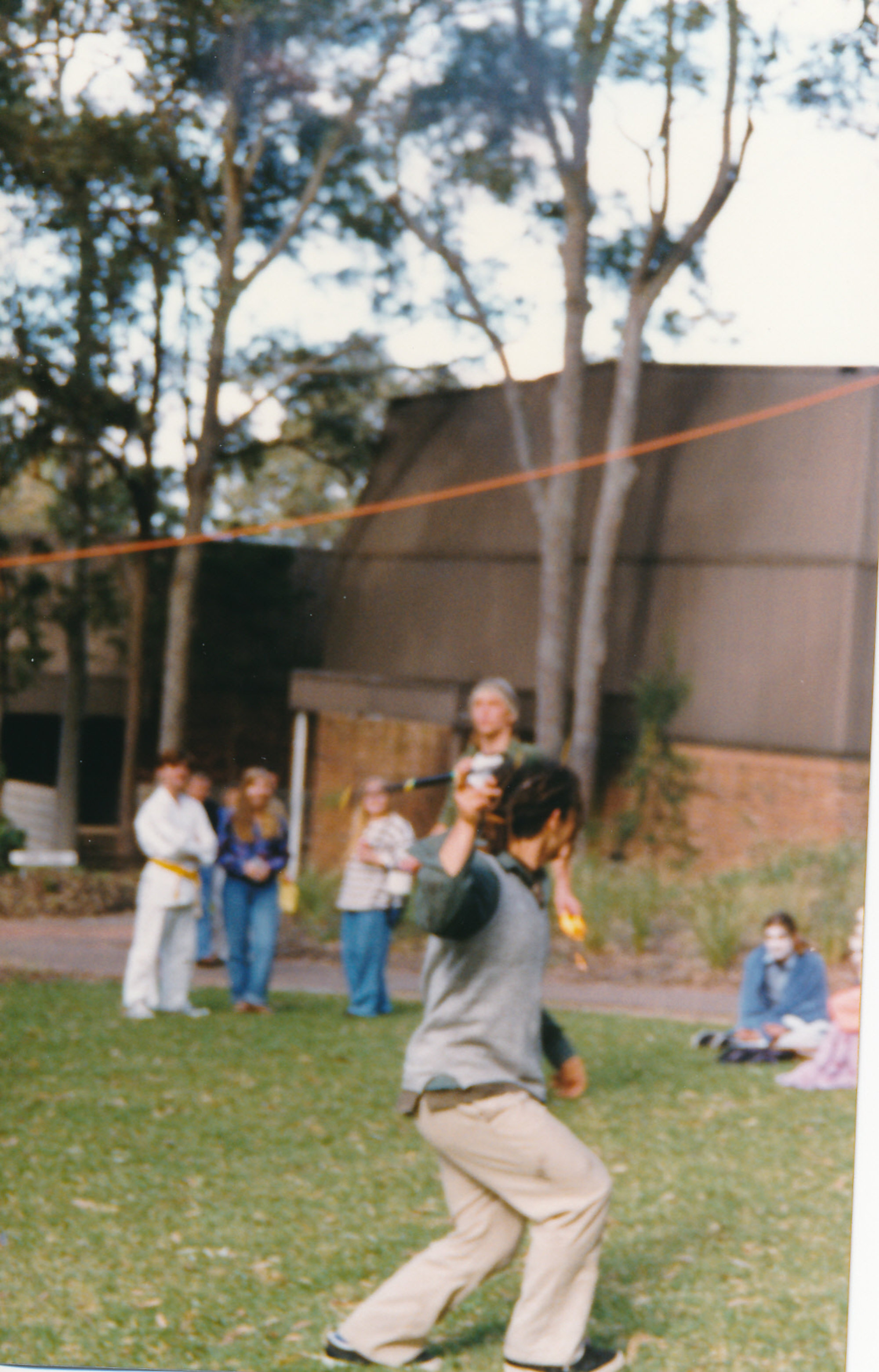 [unidentified juggler] performing at a University open day. Callaghan Campus [n.d.] [The same lady is in the previous image 01532], [B004_IMG1533]. Living Histories, accessed 06/03/2026, https://livinghistories.newcastle.edu.au/nodes/view/29540