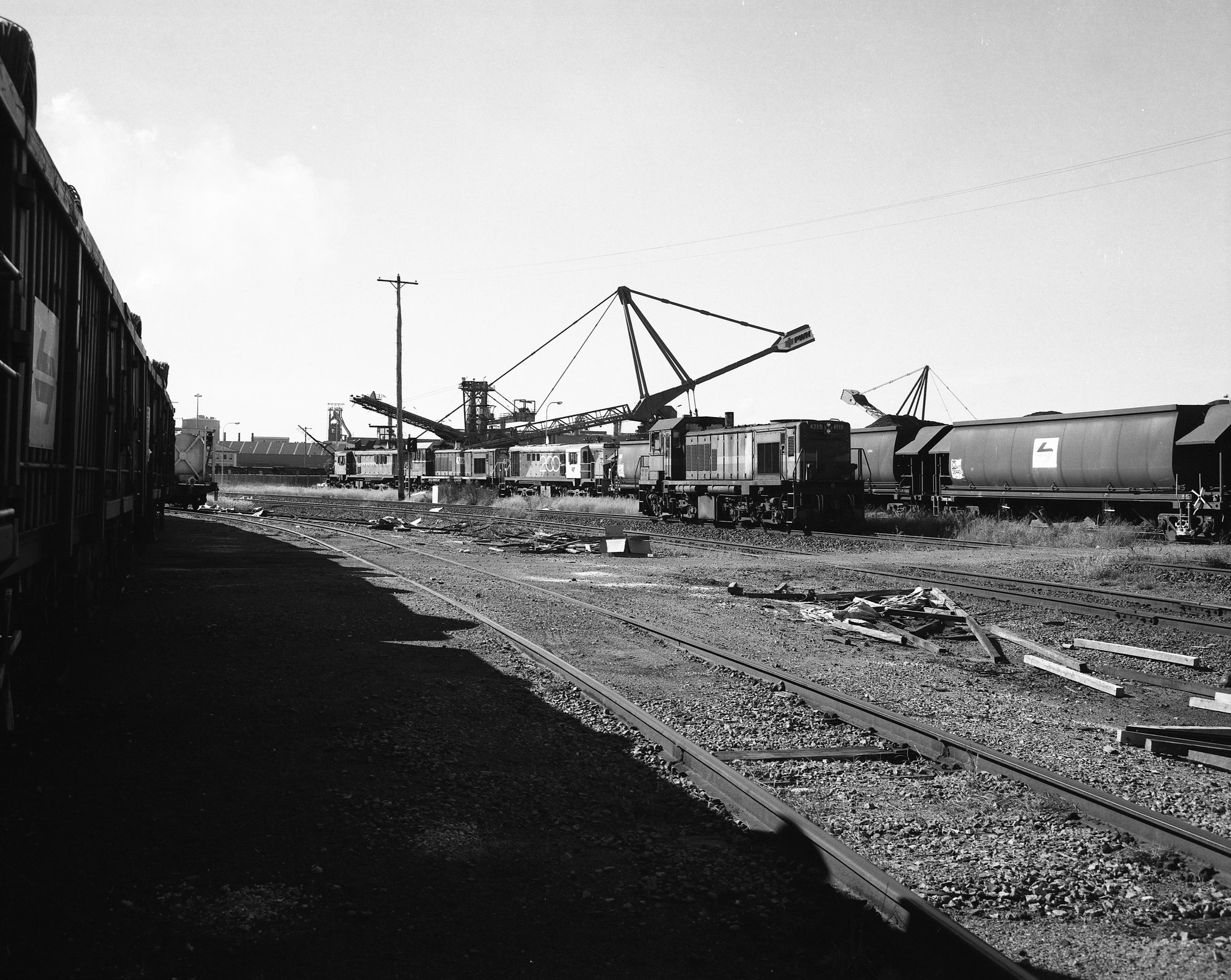 4836 + 4702 + 48165 at Port Waratah, Port Waratah Coal Services, NSW, 22 May 1988, [BRAN488_010]. Living Histories, accessed 14/01/2026, https://livinghistories.newcastle.edu.au/nodes/view/29869