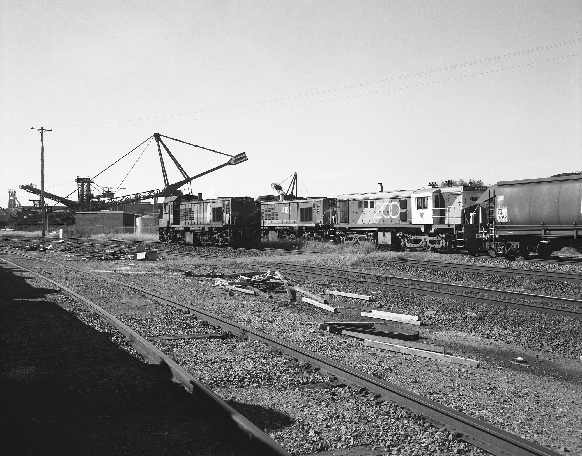 4836 + 4702 + 48165 at Port Waratah, Port Waratah Coal Services, NSW, 22 May 1988, [BRAN488_009]. Living Histories, accessed 16/04/2026, https://livinghistories.newcastle.edu.au/nodes/view/29870