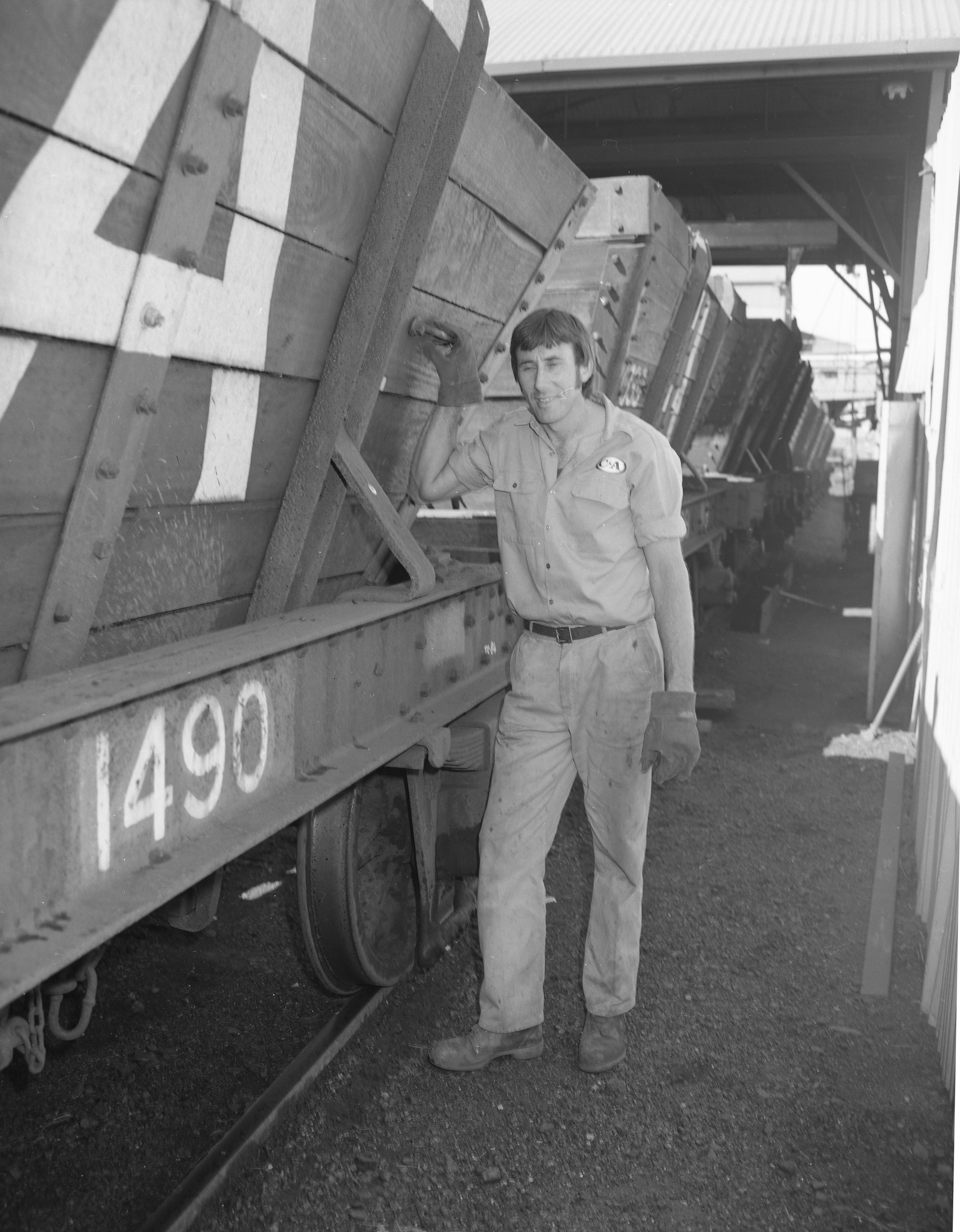 RVR Dump Hopper - Waggons ex Stockrington being dumped by Phillip Lockett, May 1985. Coal & Allied Services Pty Ltd.