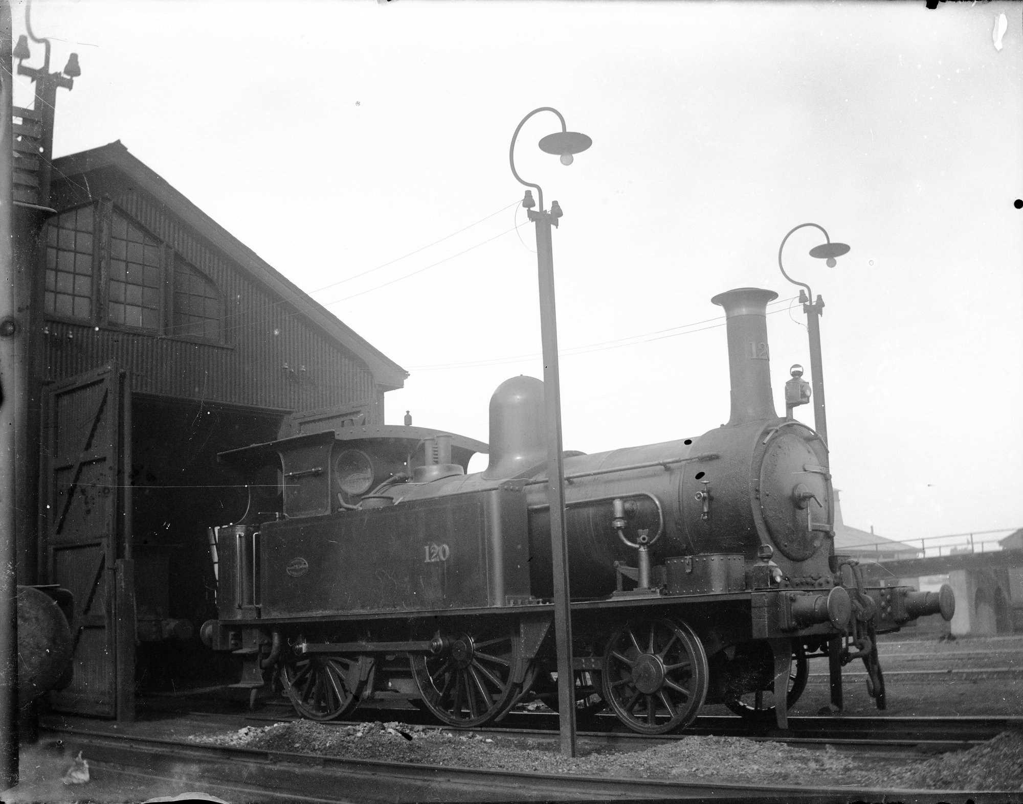 SAR, P Class, No. 120 tank type, Adelaide Suburban Locomotive Depot, Adelaide, SA, [1900] ([1900]), [ARHSBox061_1675]. Living Histories, accessed 19/03/2026, https://livinghistories.newcastle.edu.au/nodes/view/30034