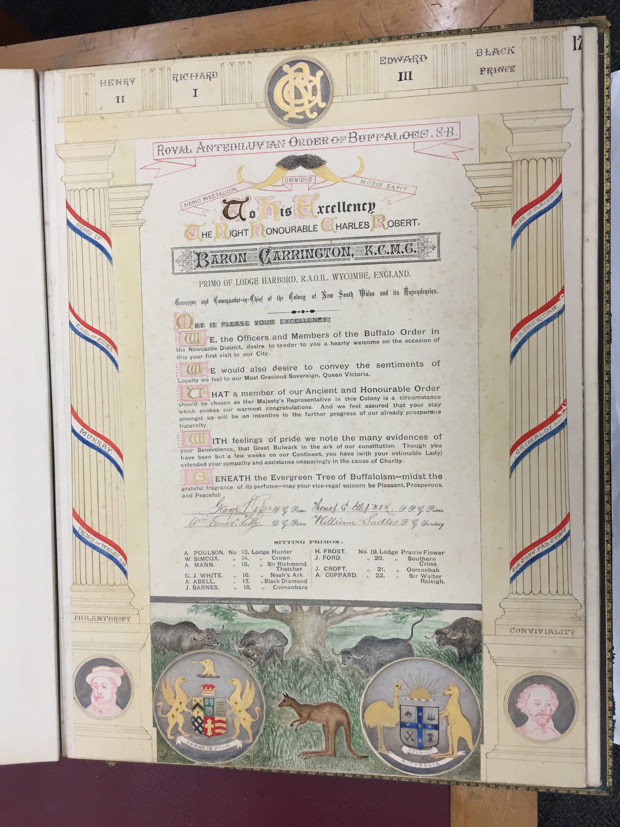 Illuminated Address of the Royal Antediluvian Order of Buffaloes. Living Histories, accessed 16/02/2026, https://livinghistories.newcastle.edu.au/nodes/view/30132