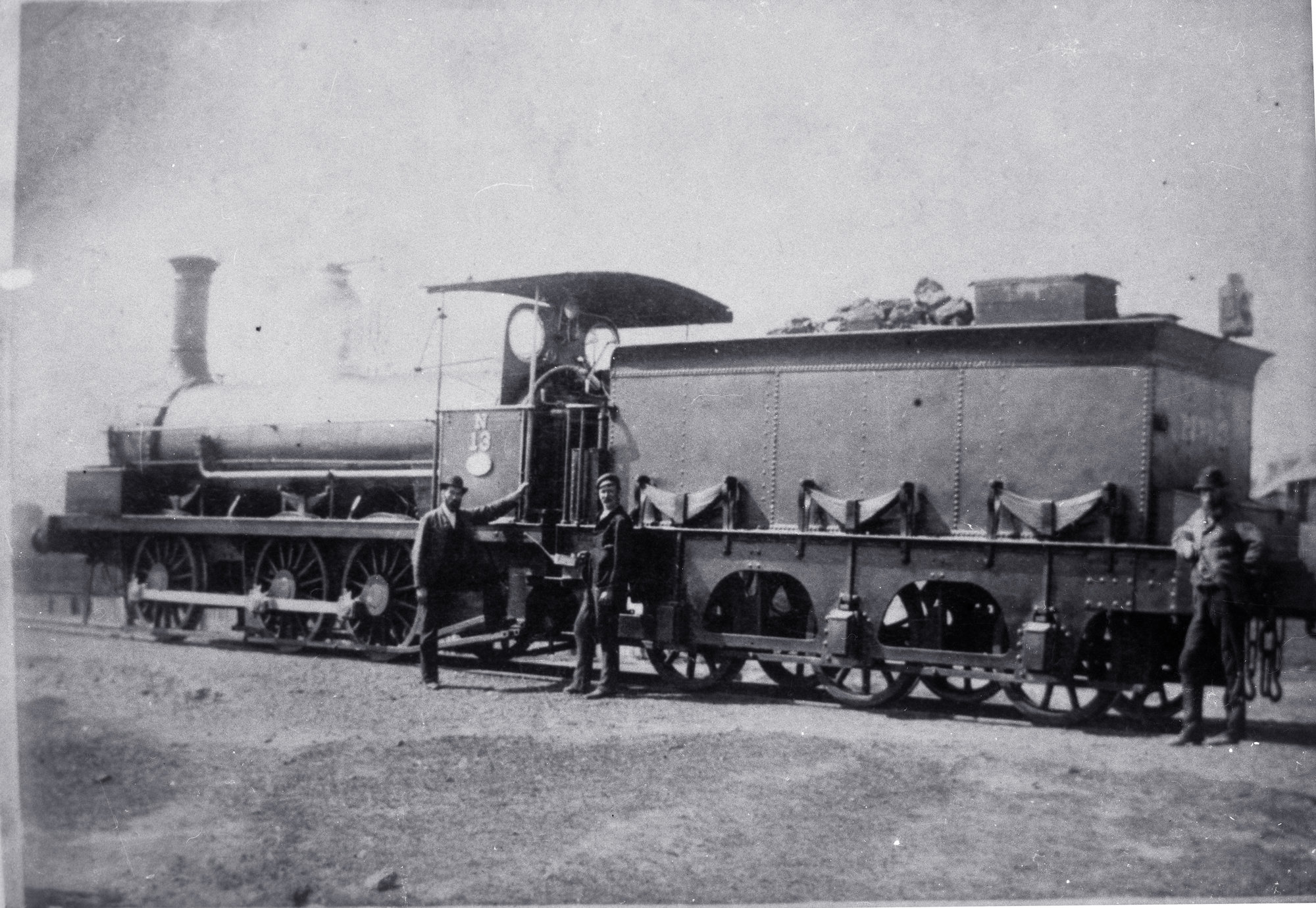 NSWGR, E-17 Class, No. 13N goods type, Hamilton Locomotive Depot, NSW, [1870s] ([1870s]), [ARHSBox055_1501]. Living Histories, accessed 18/02/2026, https://livinghistories.newcastle.edu.au/nodes/view/30313