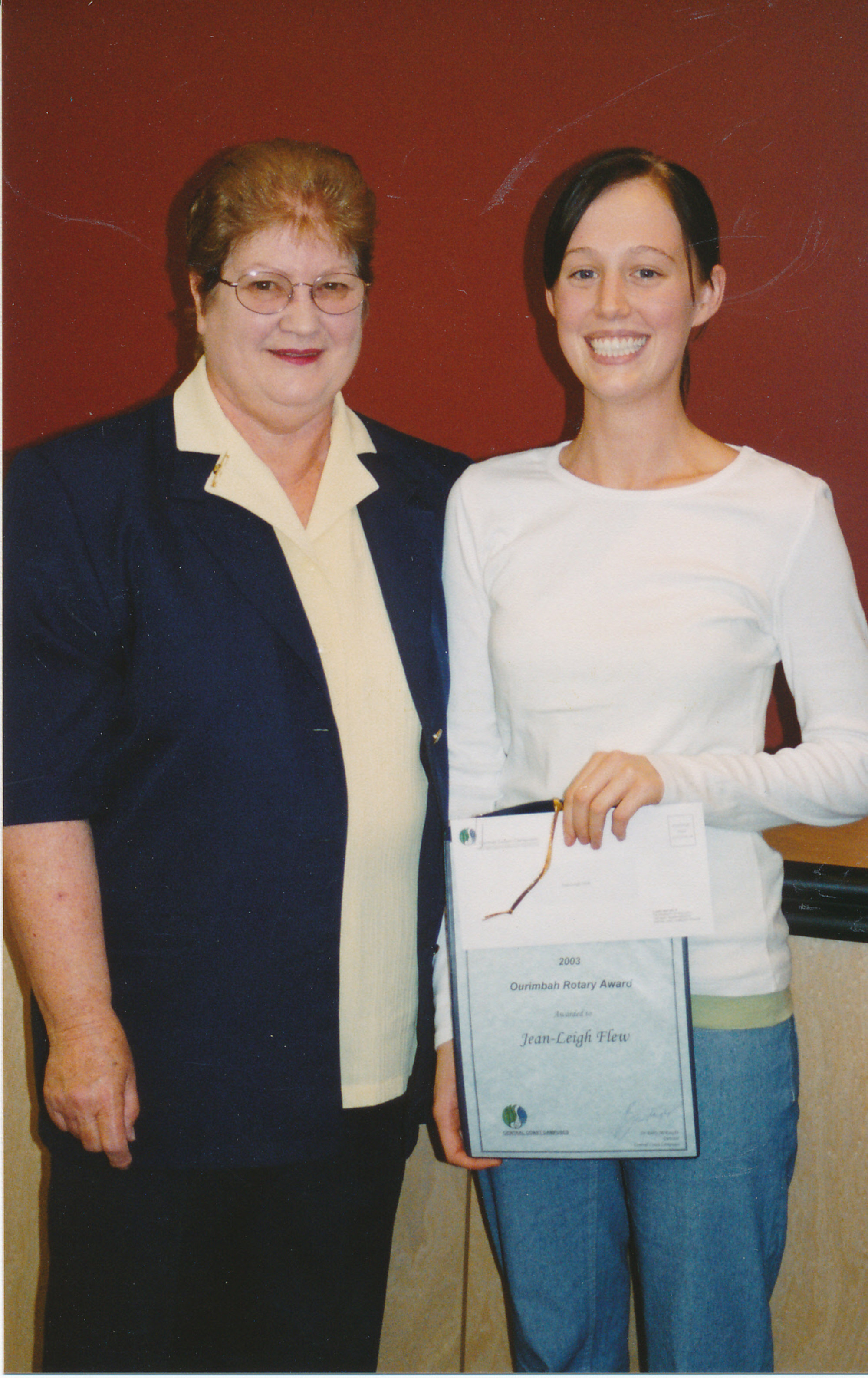 Jean-Leigh Flew and Jane Heilbrunn with Ourimbah Rotary Award 2003
