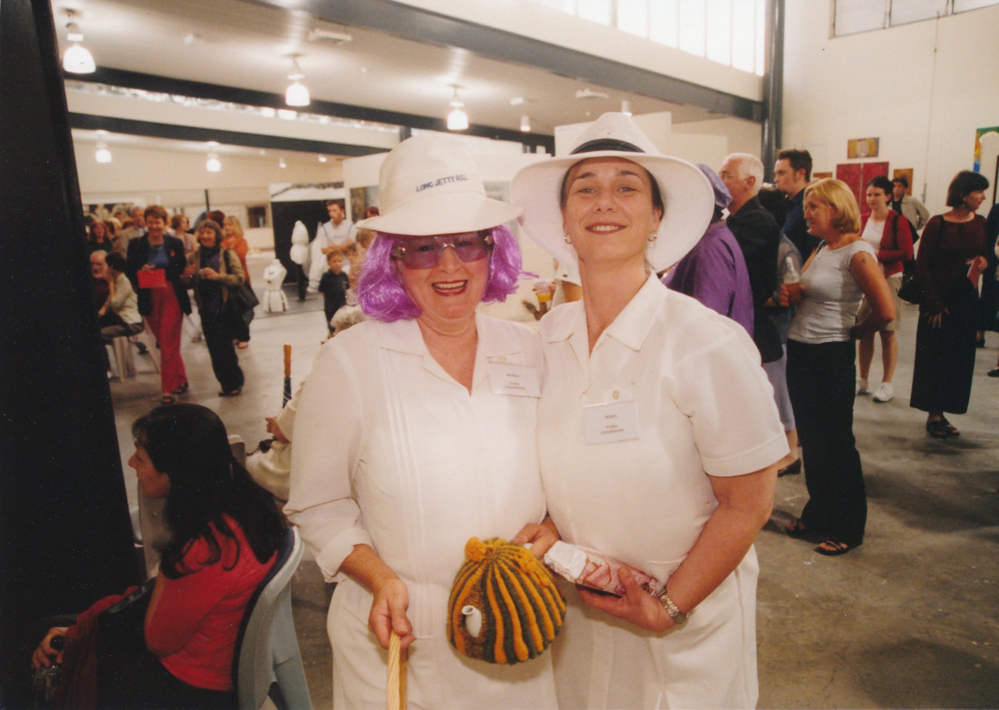 "We like to have a bit of fun!" Guests viewing annual Art Exhibition, 2002, Fine Art building