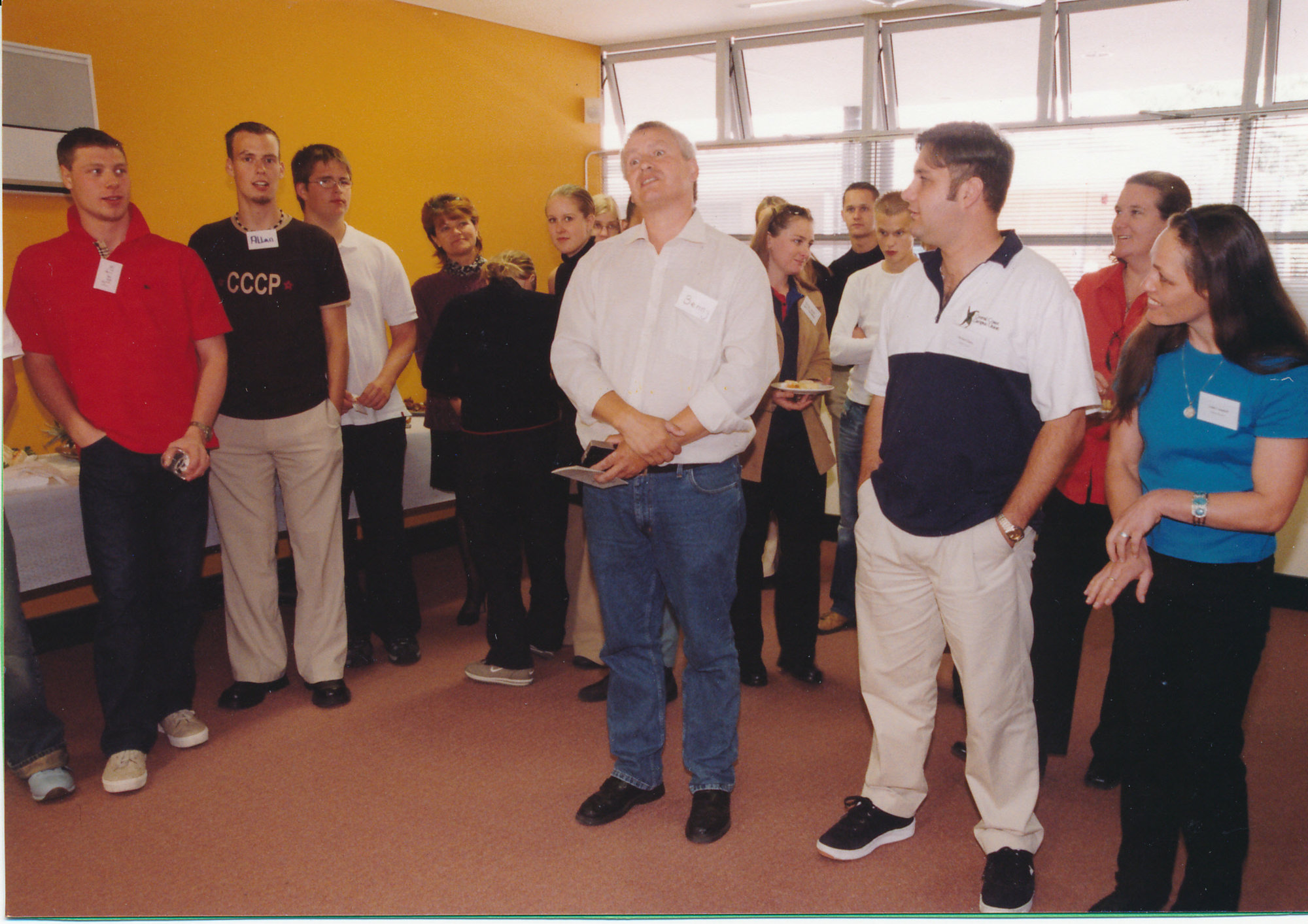 Michael Kmet (Sport and Recreation Officer - Student Union) with students, [B001_IMG0002]. Living Histories, accessed 16/04/2026, https://livinghistories.newcastle.edu.au/nodes/view/31367