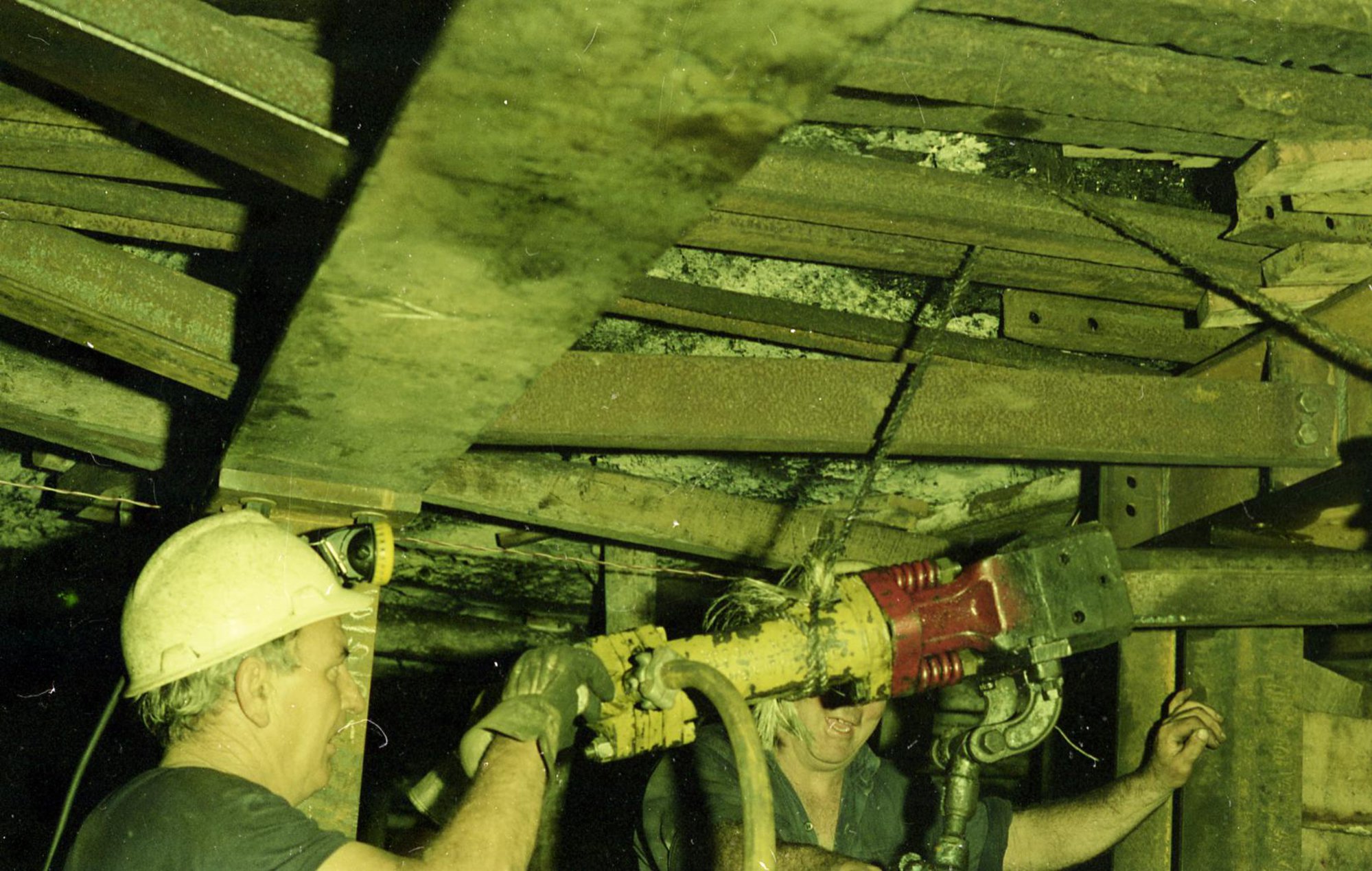 Buried continuous miner in Black Hill section, Stockrington No. 2 Colliery, NSW, October 1977