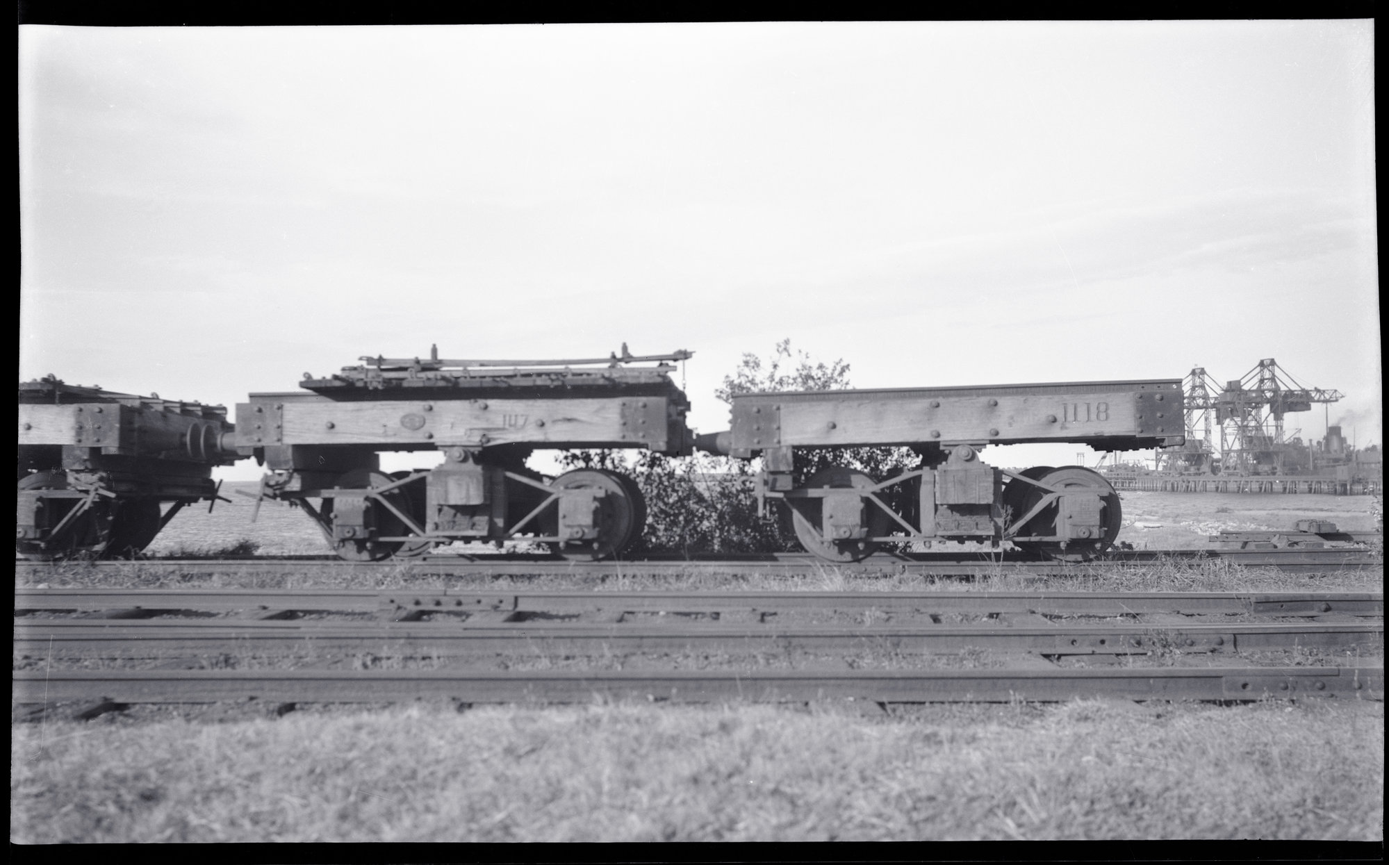 NSWPWD Wagons used for transporting stone blocks for breakwater construction at Inner Harbour near No. 1 Jetty, Port Kembla, [1940s]