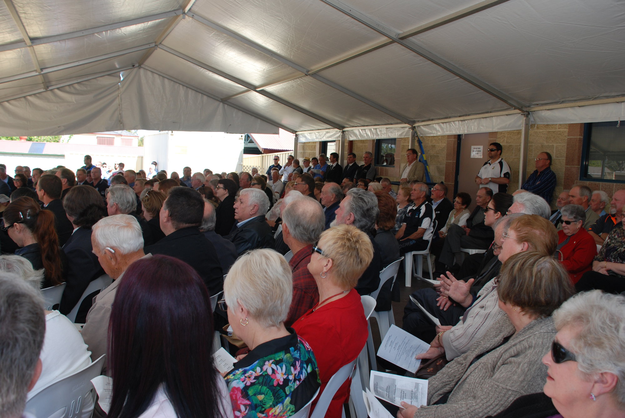 Audience at the memorial service at the Jim Comerford Miners Memorial Wall, Aberdare, NSW, 9 September 2012