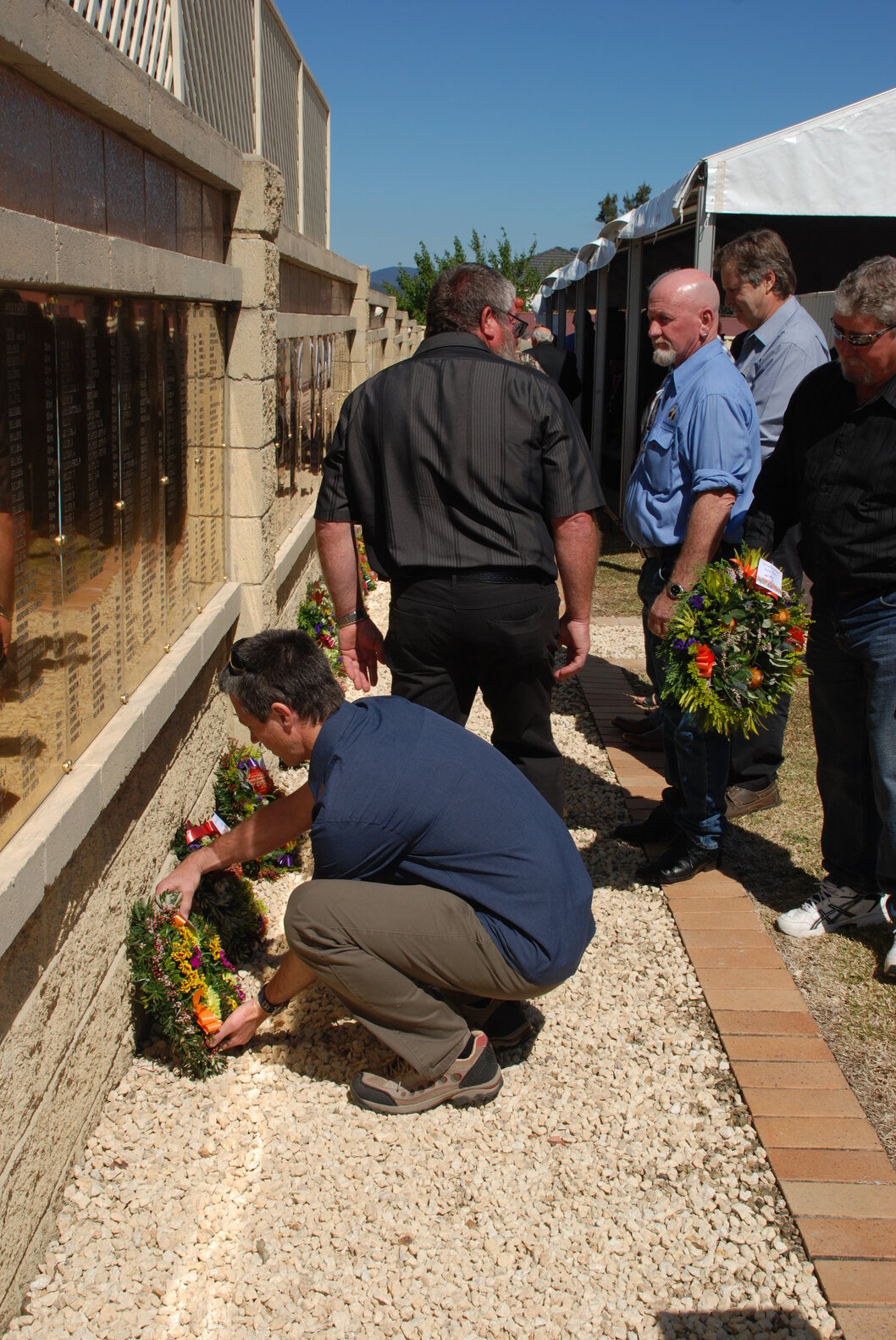 Wreath laying at the memorial service at the Jim Comerford Miners Memorial Wall, Aberdare, NSW, 9 September 2012