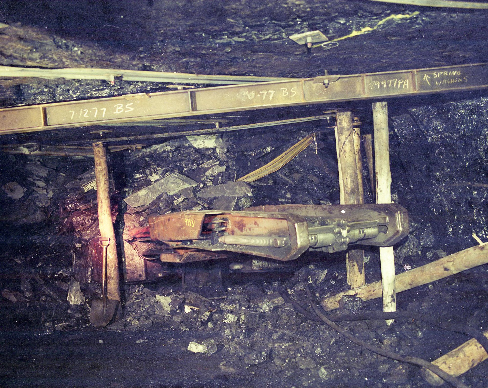 Buried Continuous Miner in 1 West section, West Wallsend No. 2 Colliery, NSW, October 1977