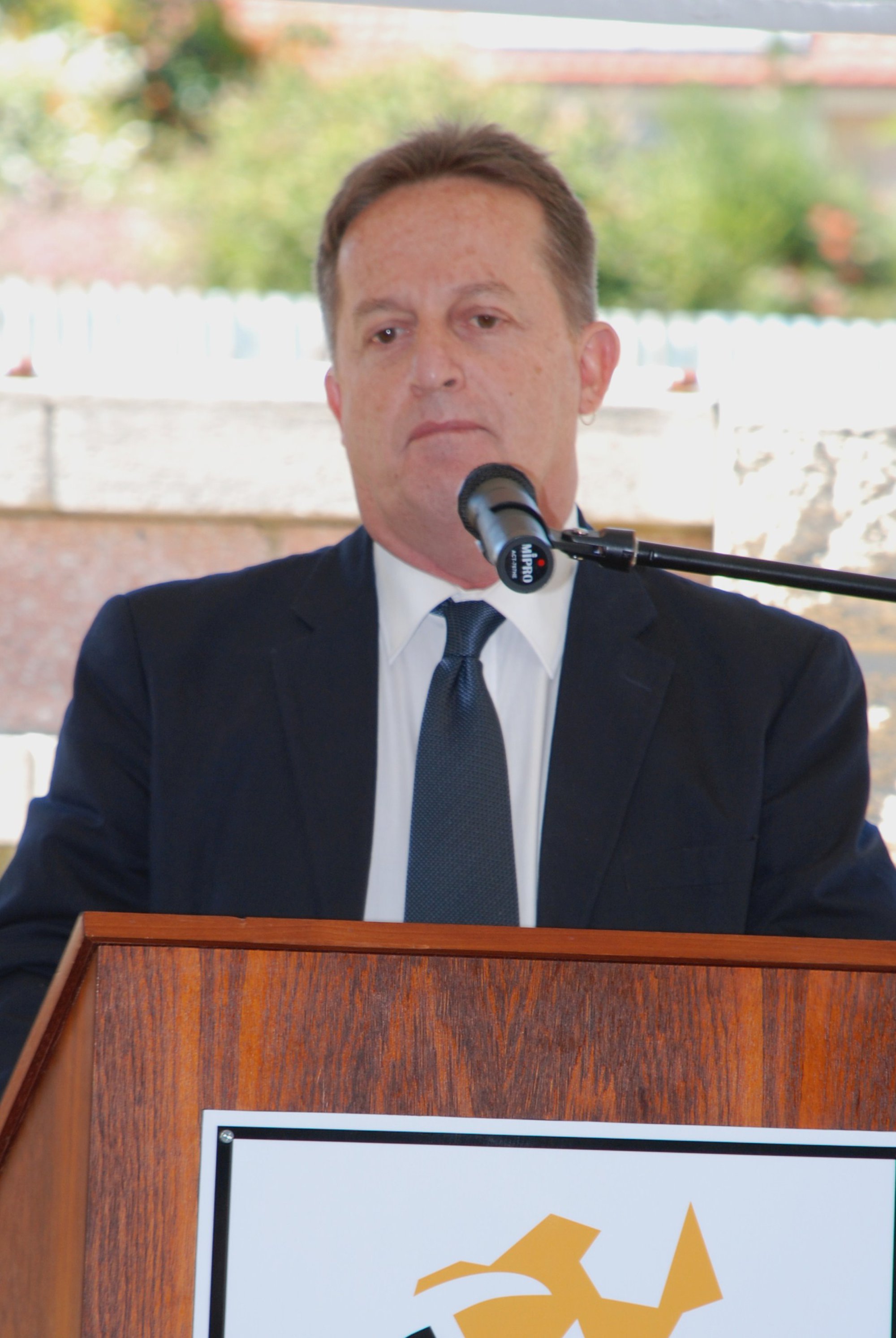 Speaker at at the memorial service at the Jim Comerford Miners Memorial Wall, Aberdare, NSW, 9 September 2012