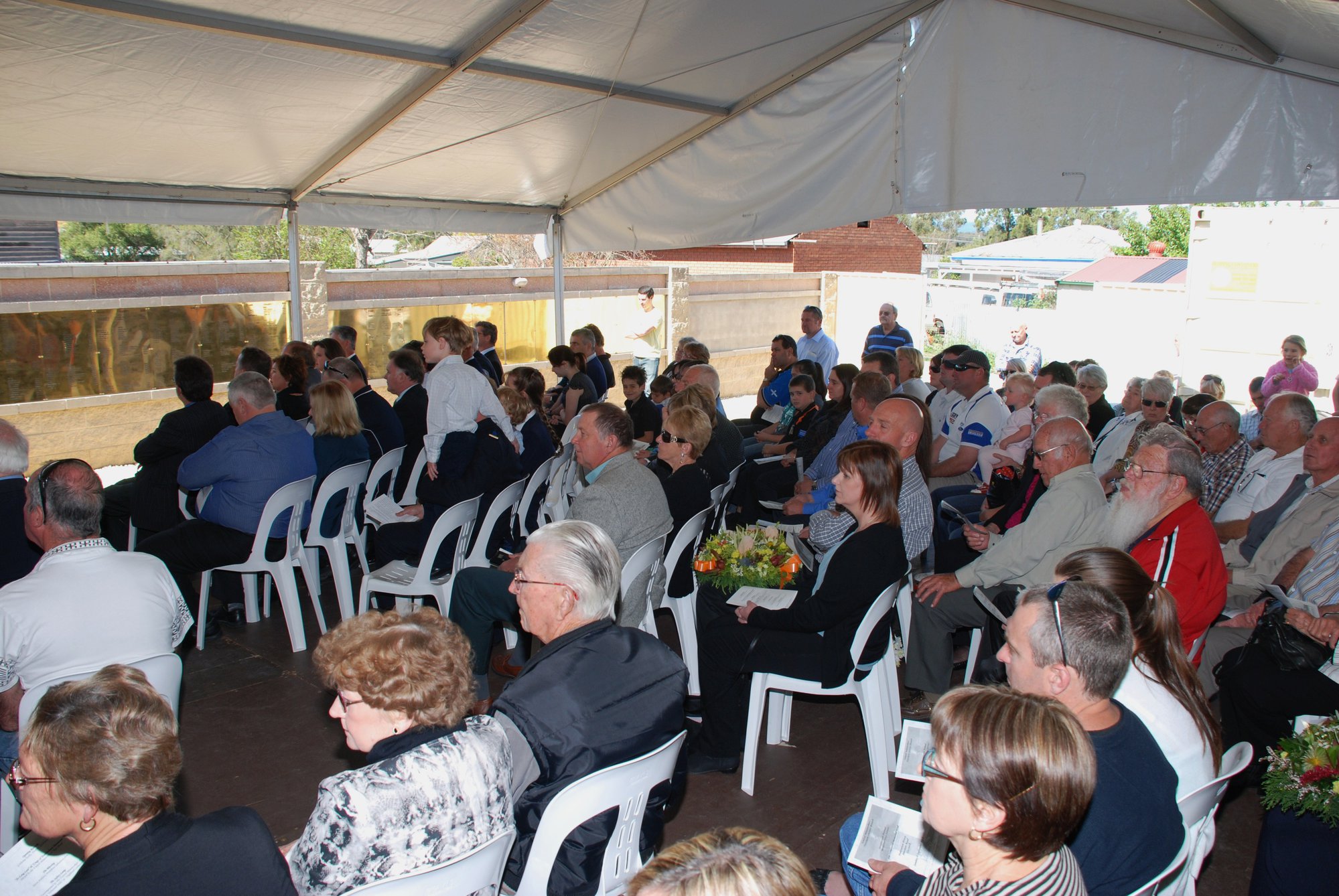 Audience at the memorial service at the Jim Comerford Miners Memorial Wall, Aberdare, NSW, 9 September 2012