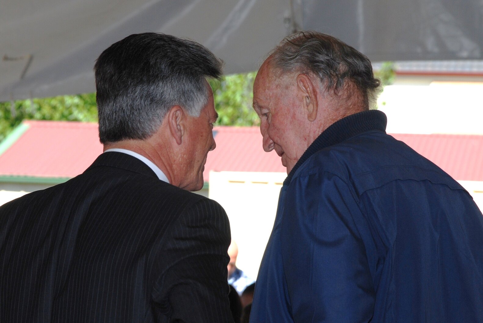 Two gentlemen at the memorial service at the Jim Comerford Miners Memorial Wall, Aberdare, NSW, 9 September 2012