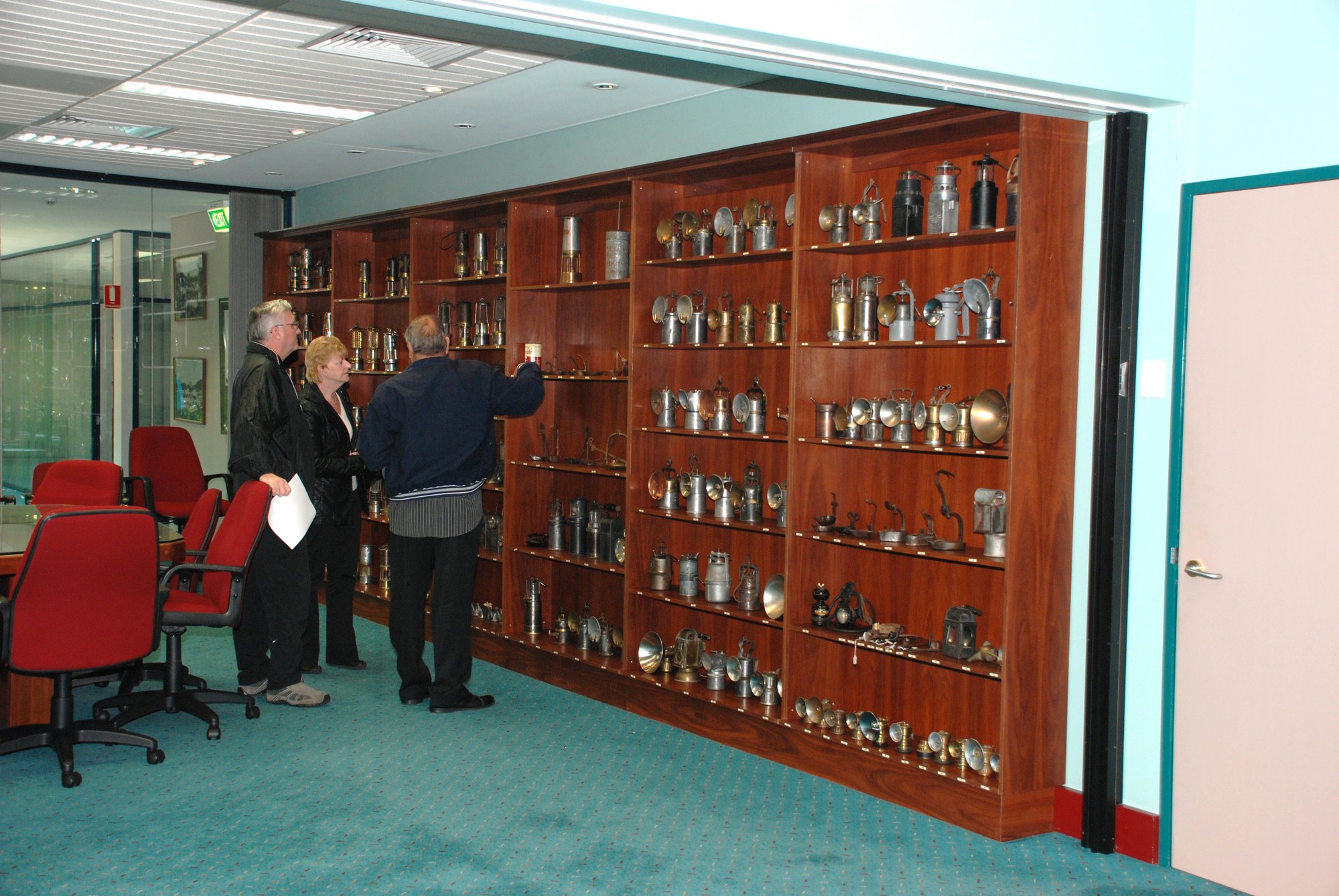 Display cases at the memorial service at the Jim Comerford Miners Memorial Wall, Aberdare, NSW, 11 September 2011