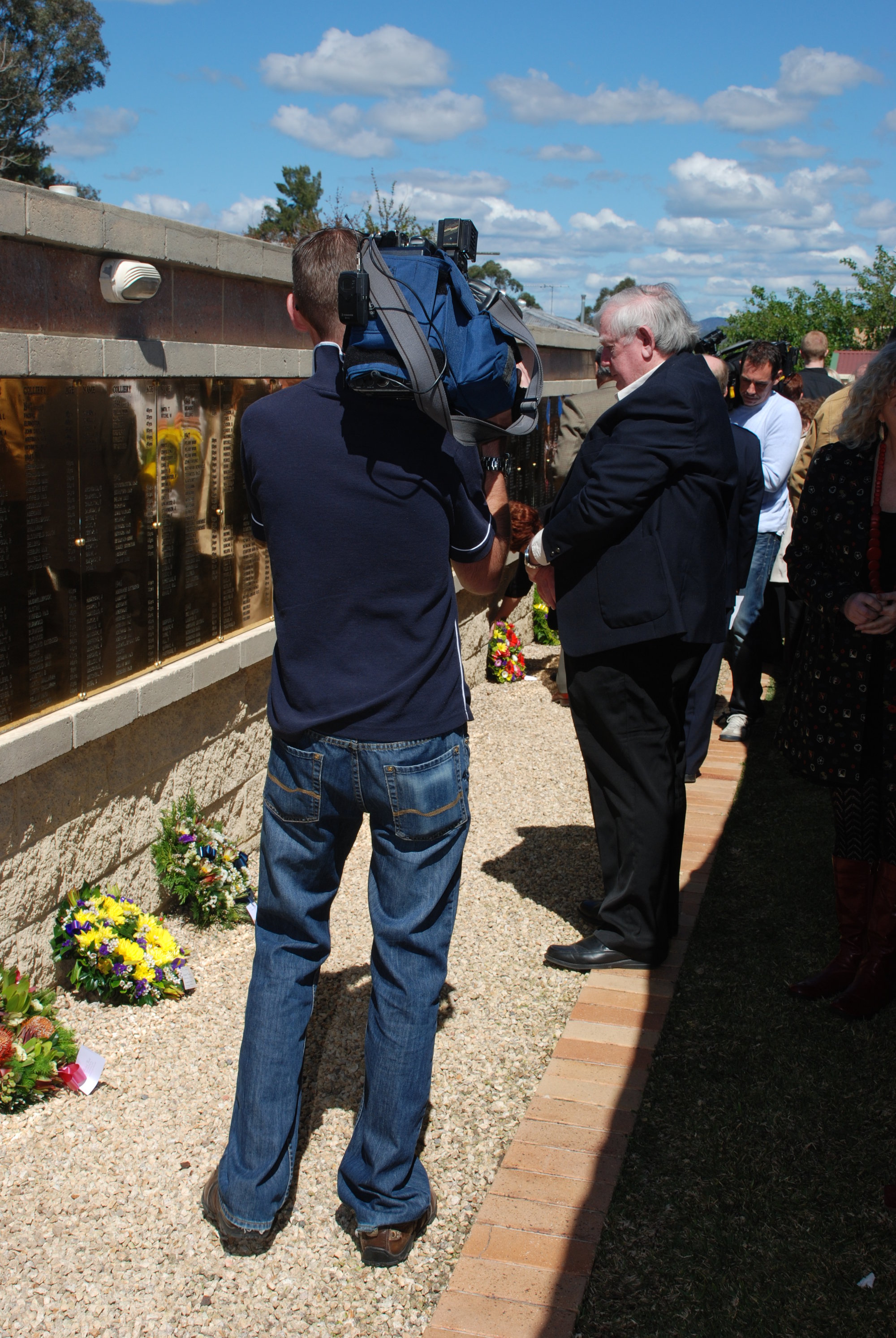Wreath laying at the memorial service at the Jim Comerford Miners Memorial Wall, Aberdare, NSW, 11 September 2011