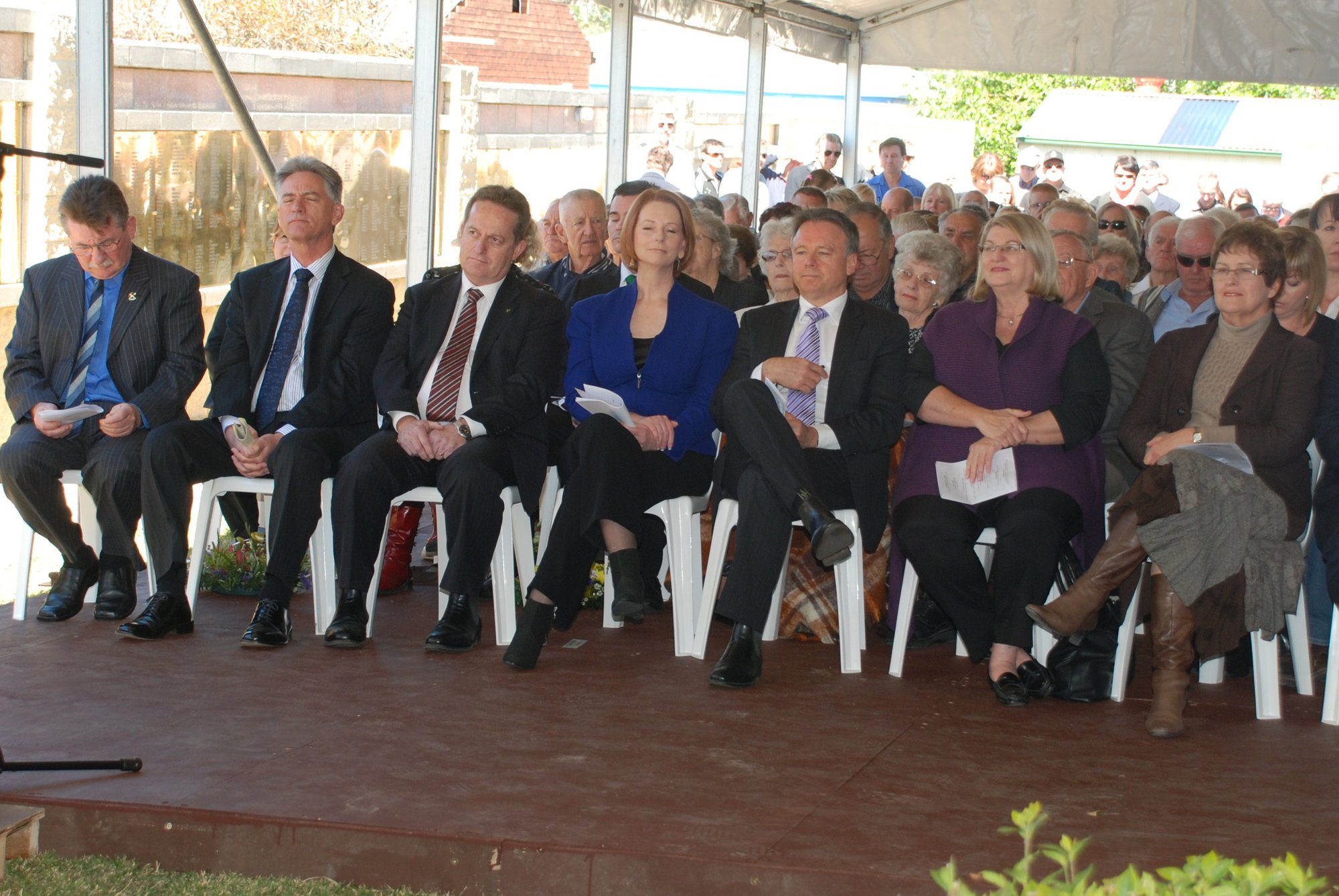 Audience, including PM Julia Gillard at the memorial service at the Jim Comerford Miners Memorial Wall, Aberdare, NSW, 11 September 2011