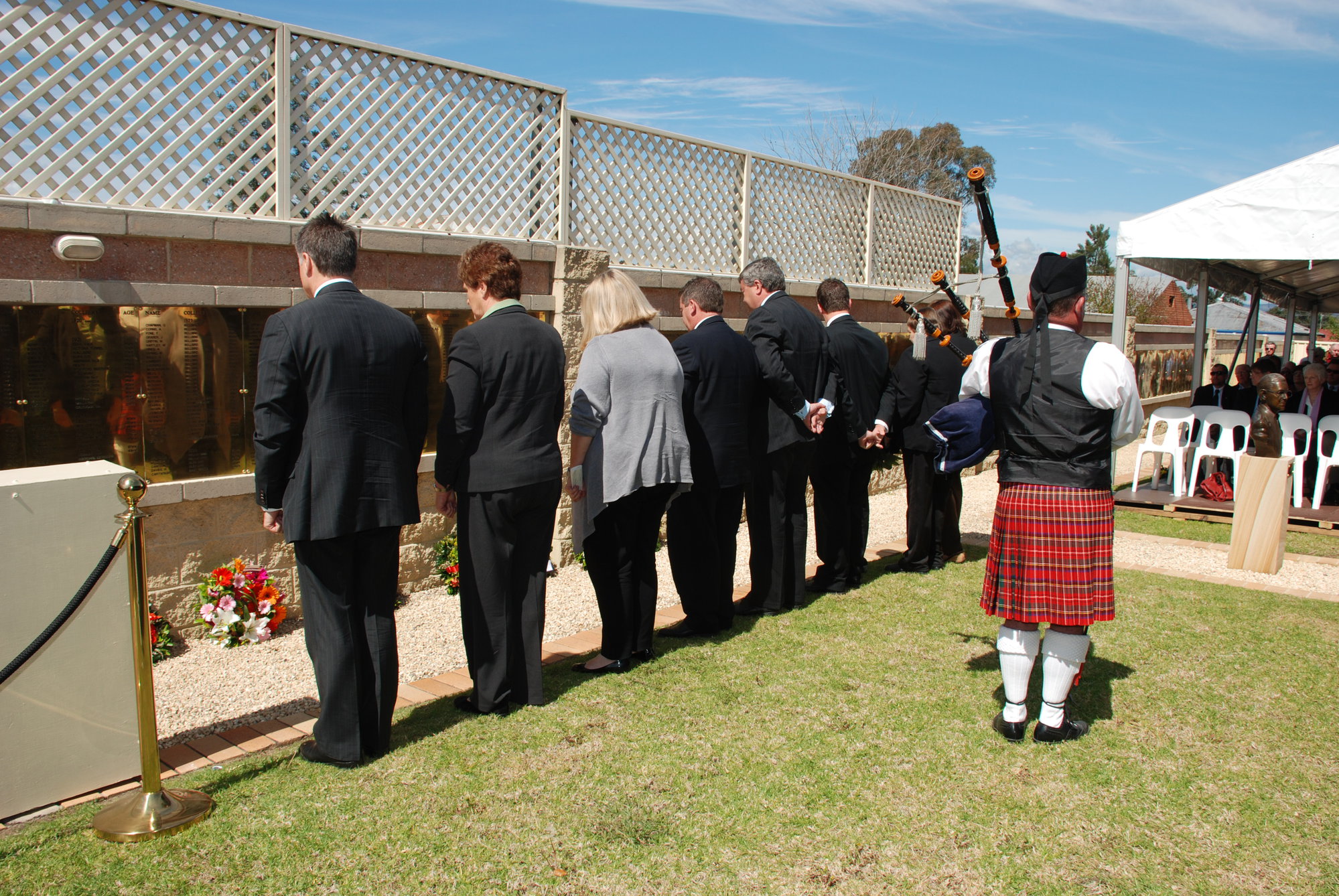 Wreath laying at the memorial service at the Jim Comerford Miners Memorial Wall, Aberdare, NSW, September 2010