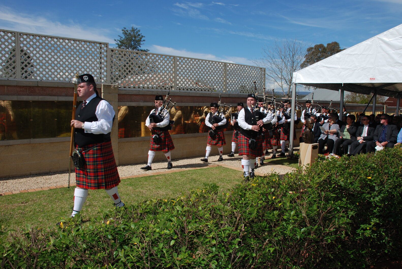 Pipers at the memorial service at the Jim Comerford Miners Memorial Wall, Aberdare, NSW, September 2010