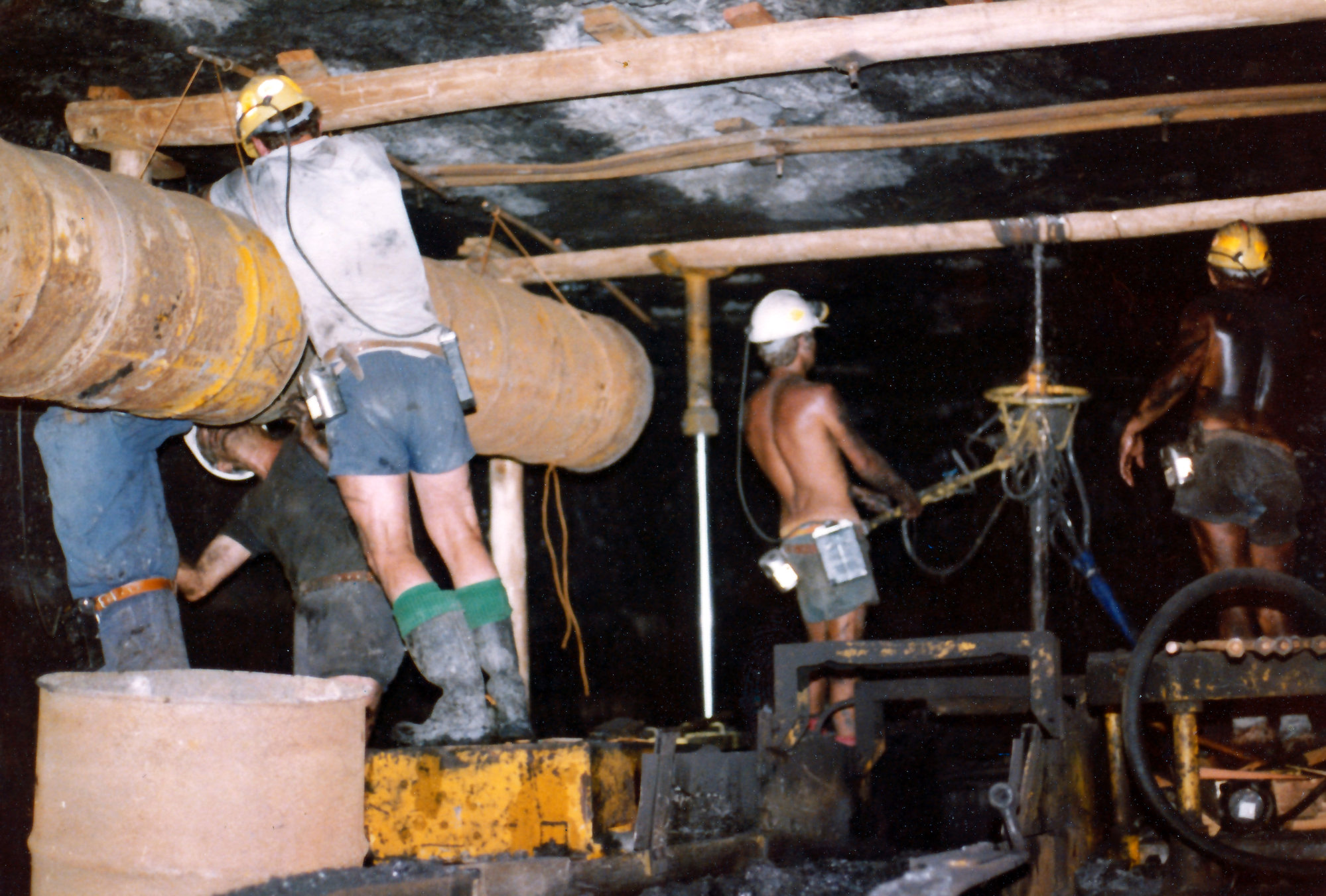 Mineworkers underground, Wambo Colliery, Warkworth, NSW, 1979