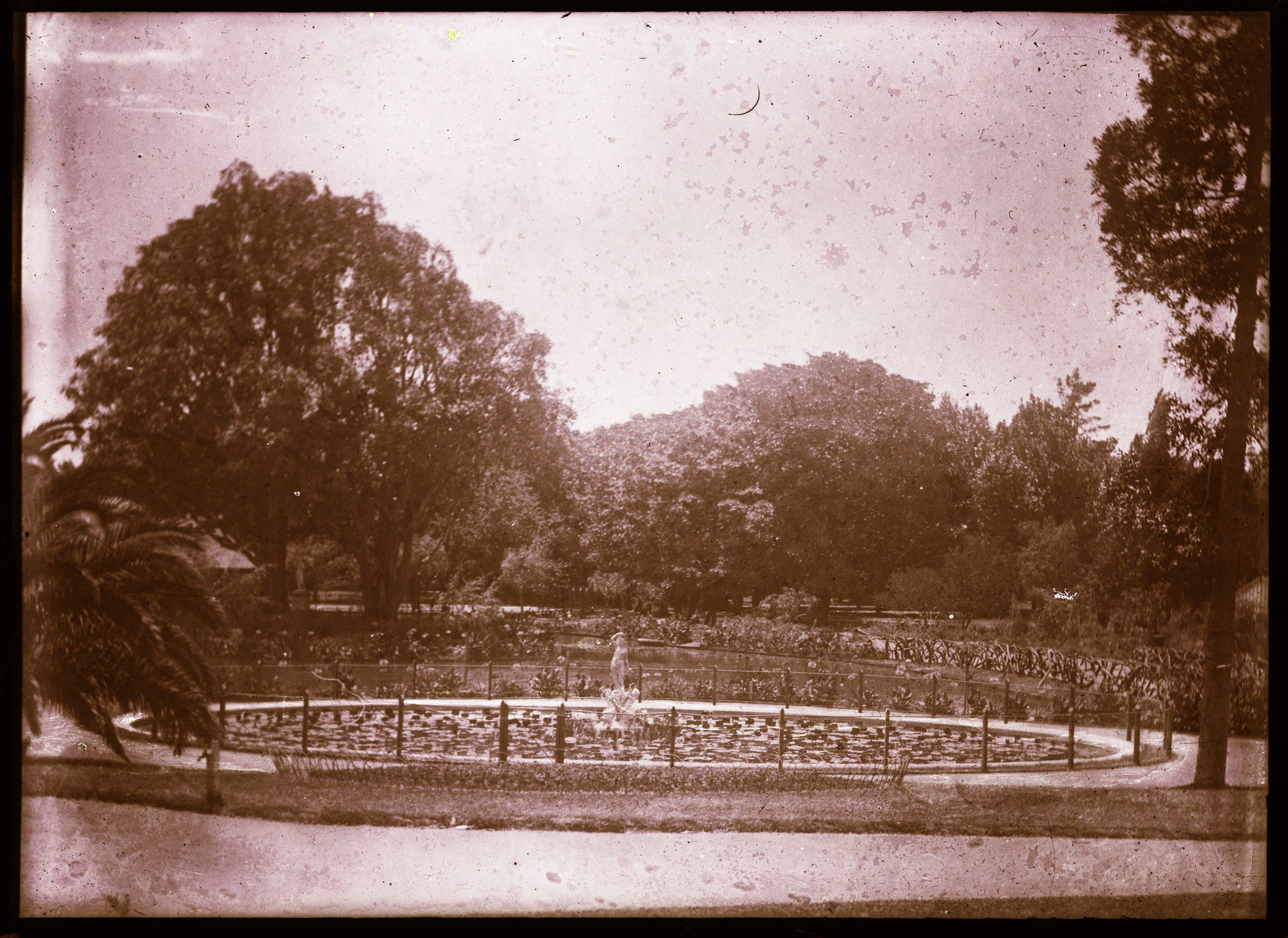 View of fountain and pond, in botanical garden, c1910s, [ARODGN_0571]. Living Histories, accessed 17/02/2026, https://livinghistories.newcastle.edu.au/nodes/view/32423