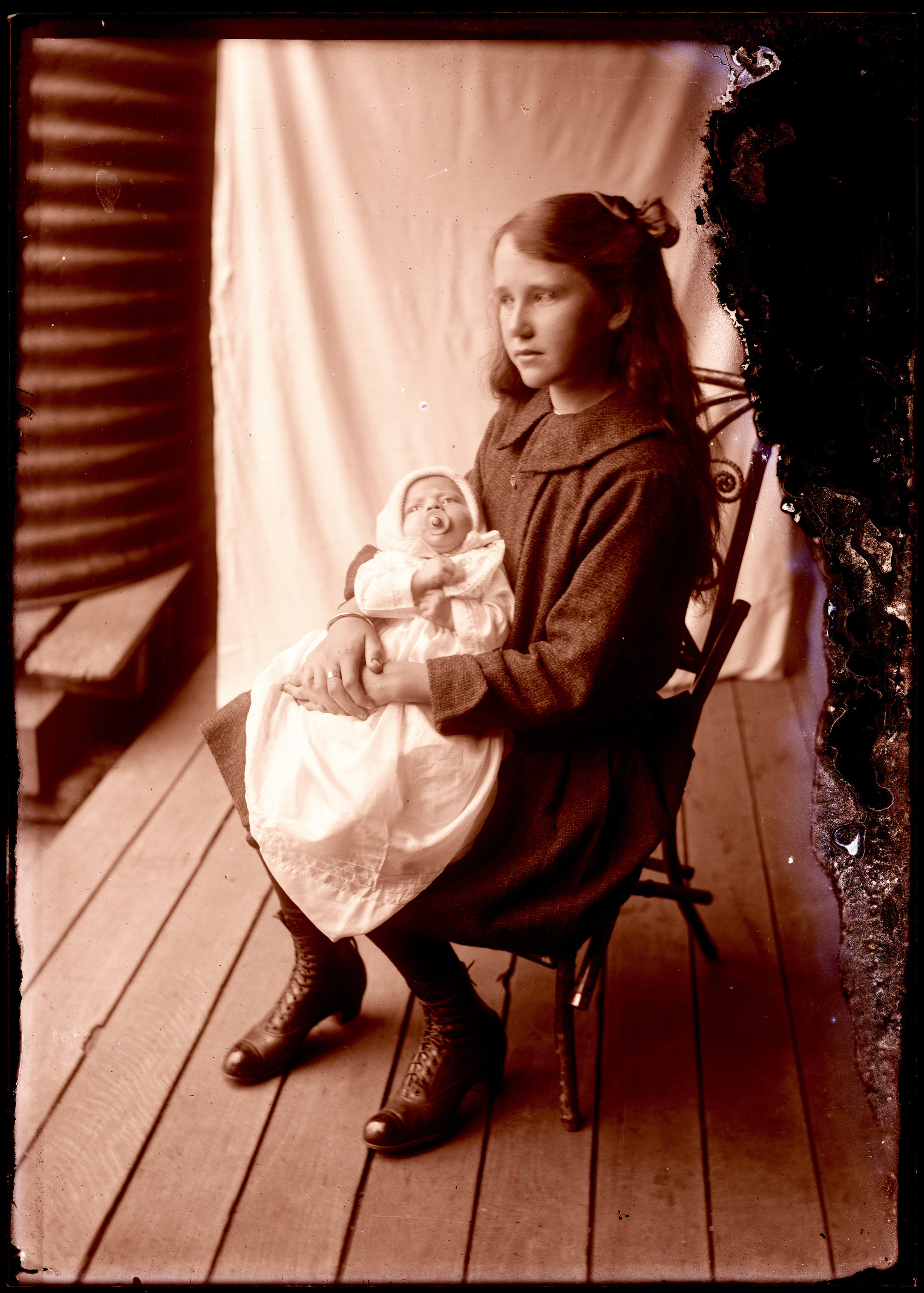Young girl with infant on ornate cane chair, [ARODGN_0436]. Living Histories, accessed 17/02/2026, https://livinghistories.newcastle.edu.au/nodes/view/32567