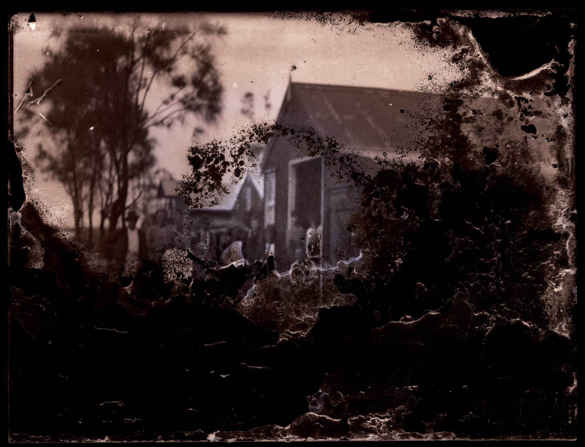 People outside building (damaged glass negative) c1910s, [ARODGN0052]. Living Histories, accessed 15/04/2026, https://livinghistories.newcastle.edu.au/nodes/view/32980