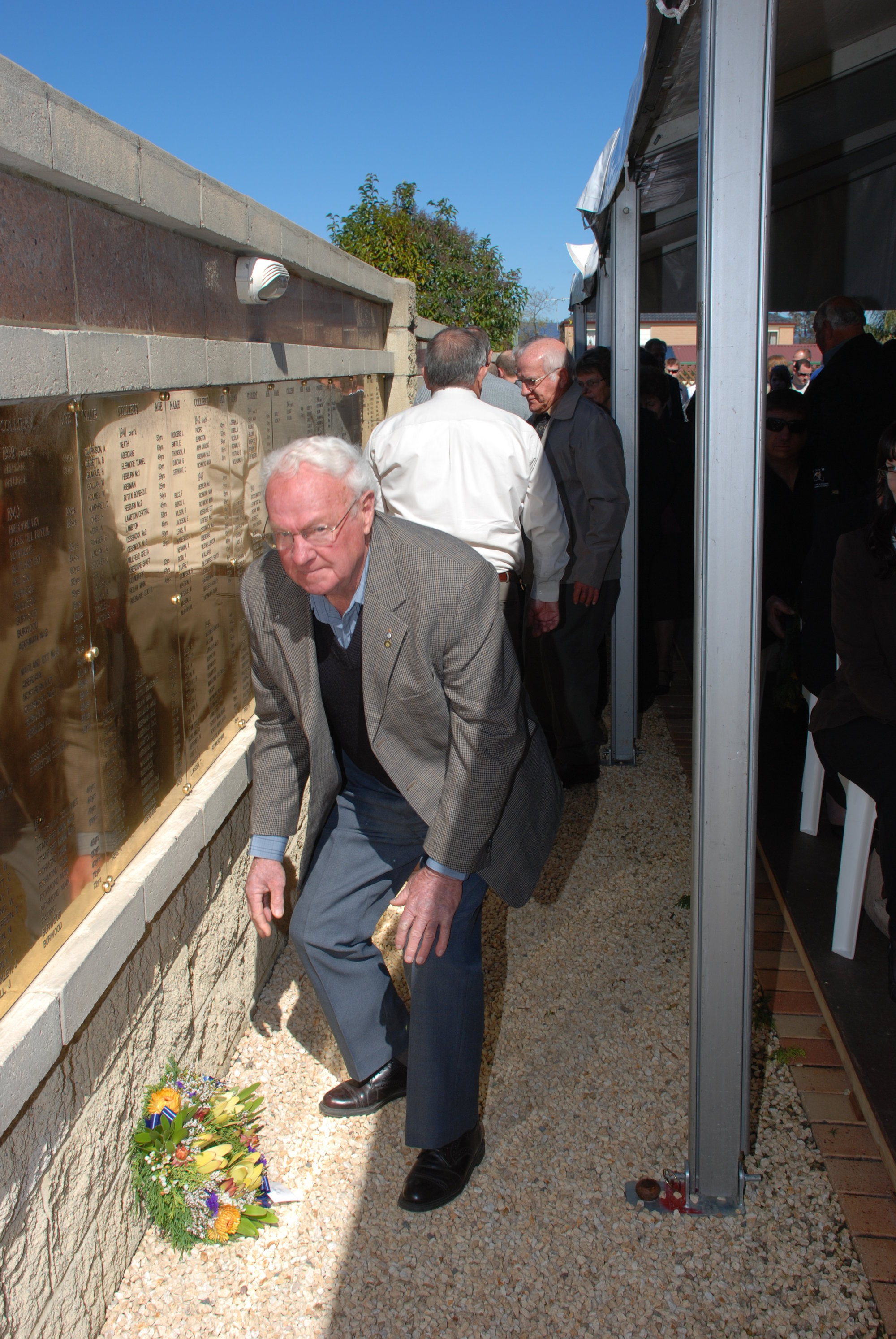Wreath laying at the memorial service at the Jim Comerford Miners Memorial Wall, Aberdare, NSW, August 2008