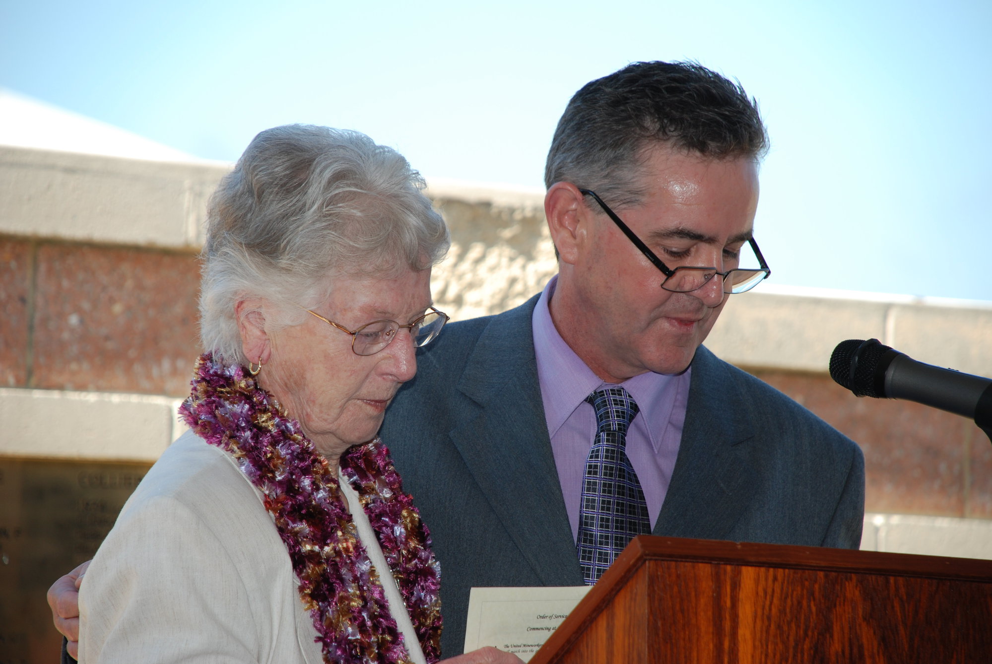 Dignitaries at the memorial service at the Jim Comerford Miners Memorial Wall, Aberdare, NSW, 2007