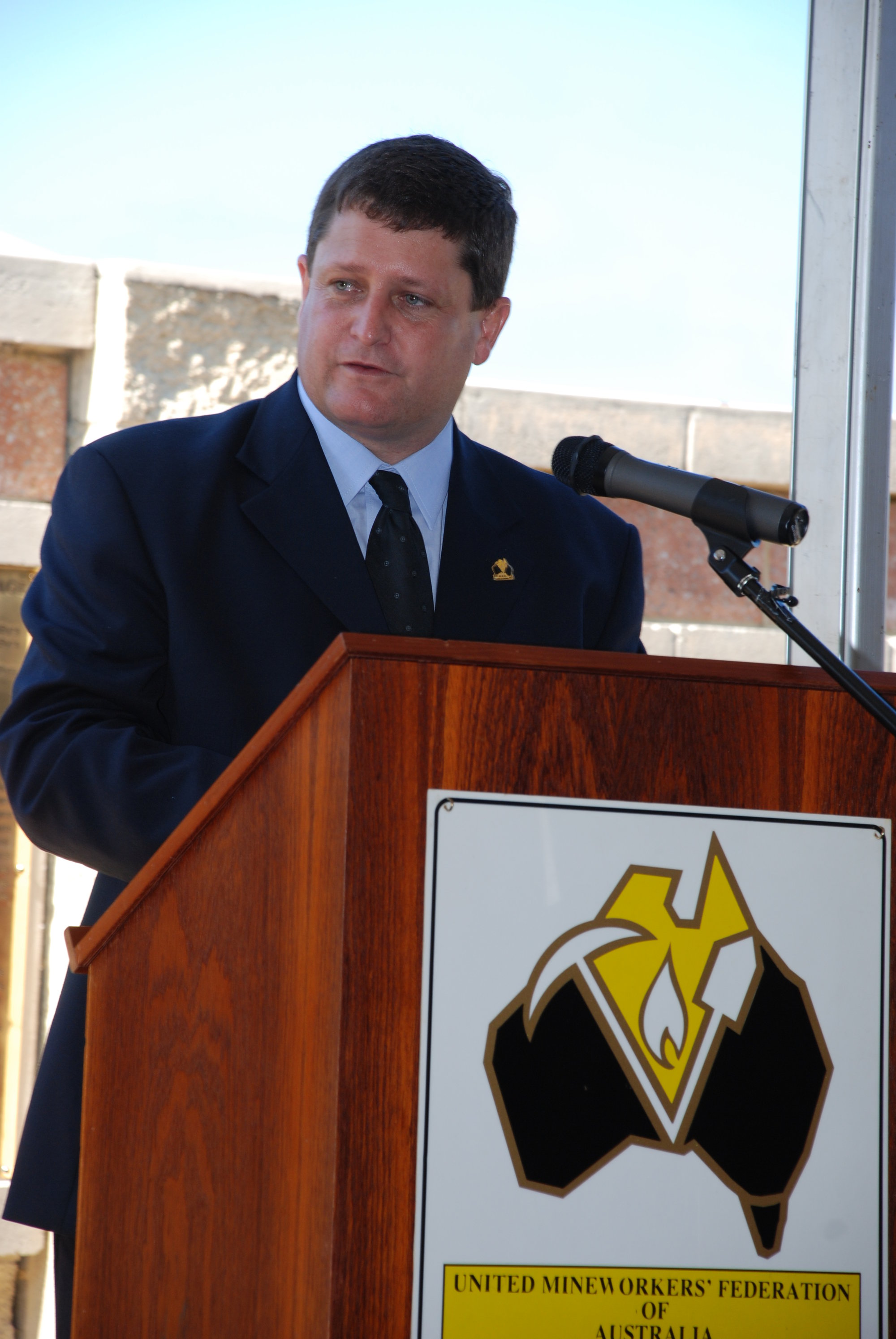 Speaker at the memorial service at the Jim Comerford Miners Memorial Wall, Aberdare, NSW, 2007