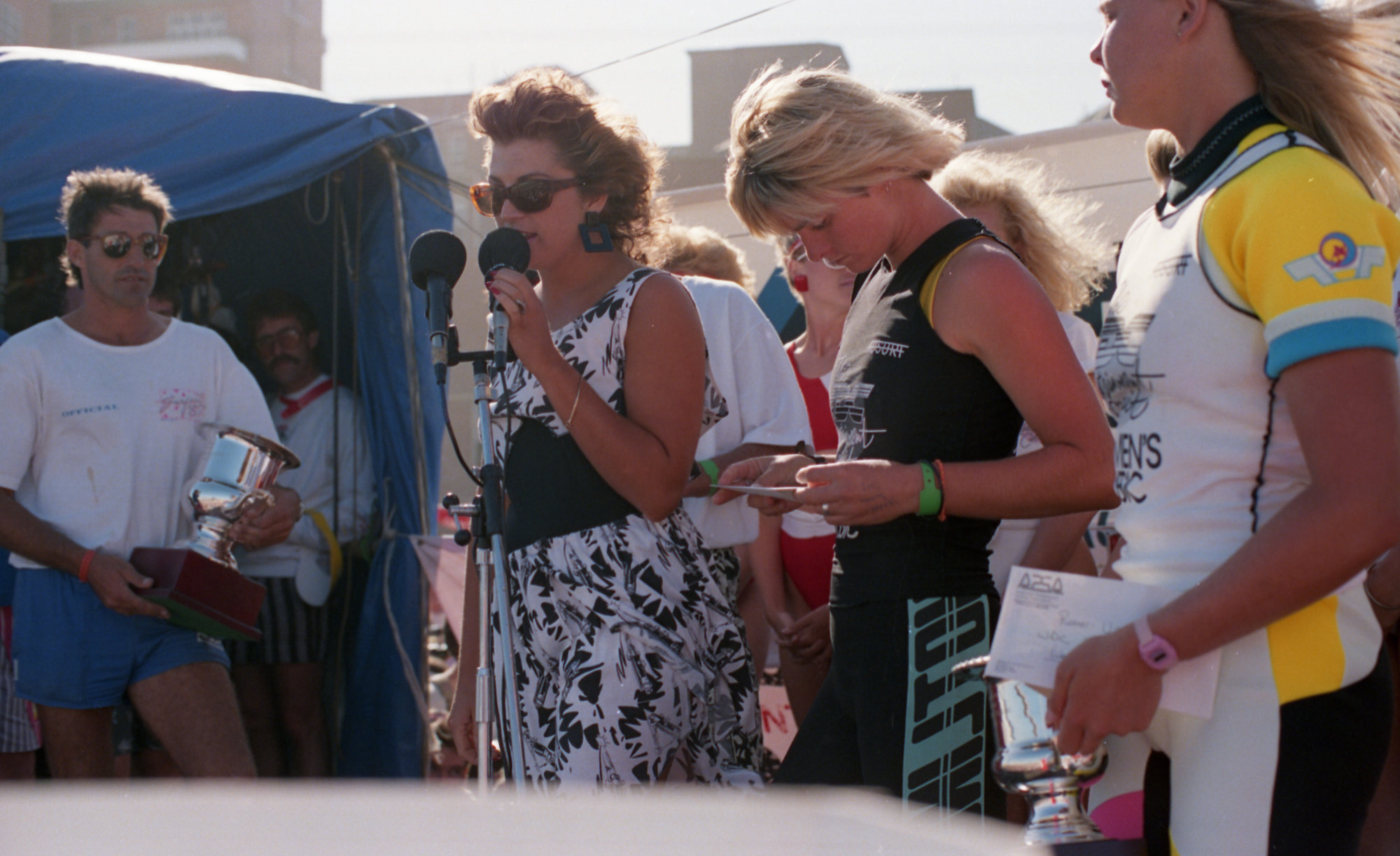 Surfest '87 [Warren 'Wazza' Smith - Far left presenting trophy] - 22nd November 1987, Newcastle Beach, Newcastle (Australia)