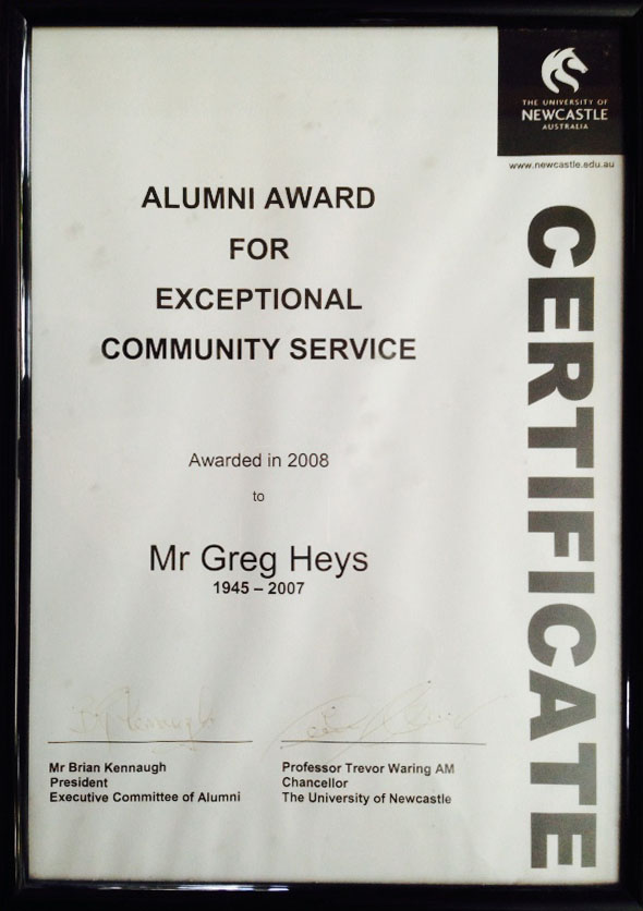 Greg Heys Posthumous Alumni Award 2008 (2008). Living Histories, accessed 14/03/2026, https://livinghistories.newcastle.edu.au/nodes/view/34381