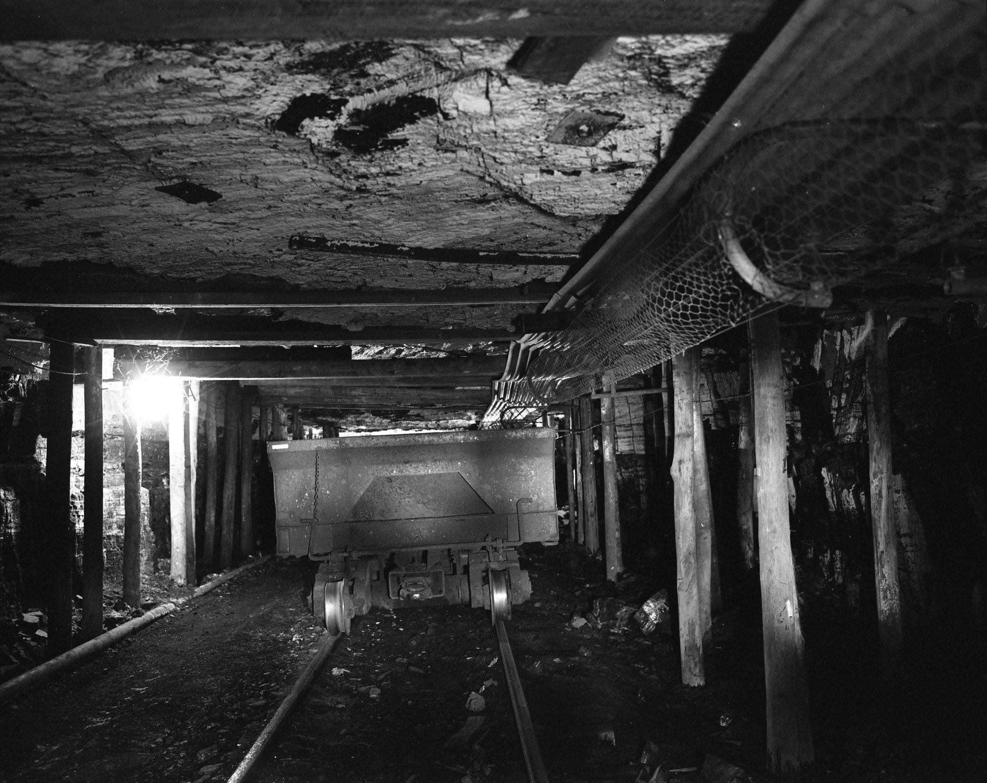Andrews, Brian Robert, Trolley wire loco system, Buttai loading point, Stockrington No 2 Colliery, Nov 1983 (1983), [OL_BRAN406_003]. Living Histories, accessed 15/04/2026, https://livinghistories.newcastle.edu.au/nodes/view/34960