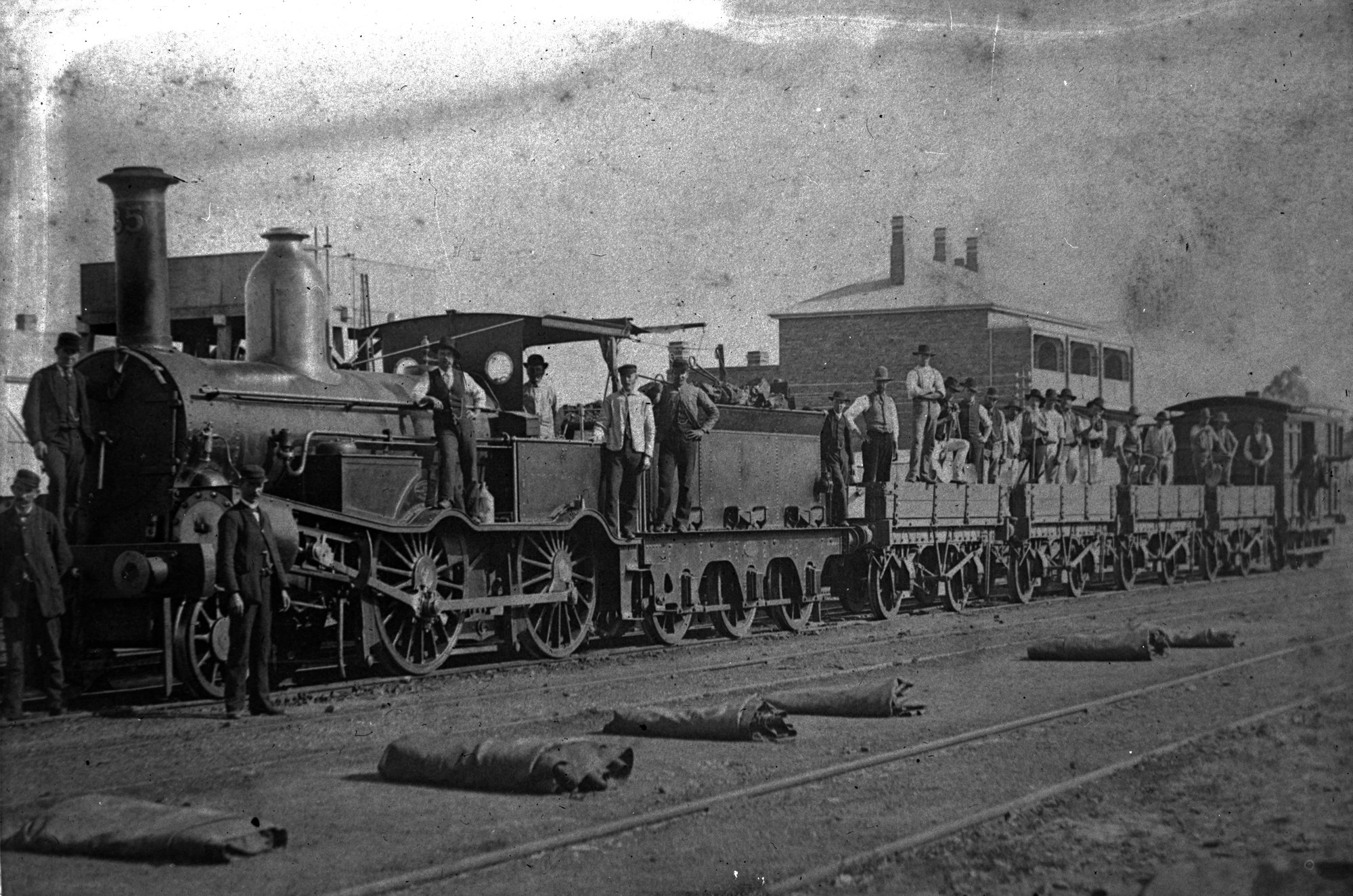 NSWGR 23 Class, No. 35 (later Z14 Class No. 1413) 2-4-0 passenger locomotive, hauling mixed train at Rydal, NSW, [1880s] ([1880s]), [ARHSBox029_0921]. Living Histories, accessed 04/04/2026, https://livinghistories.newcastle.edu.au/nodes/view/3498
