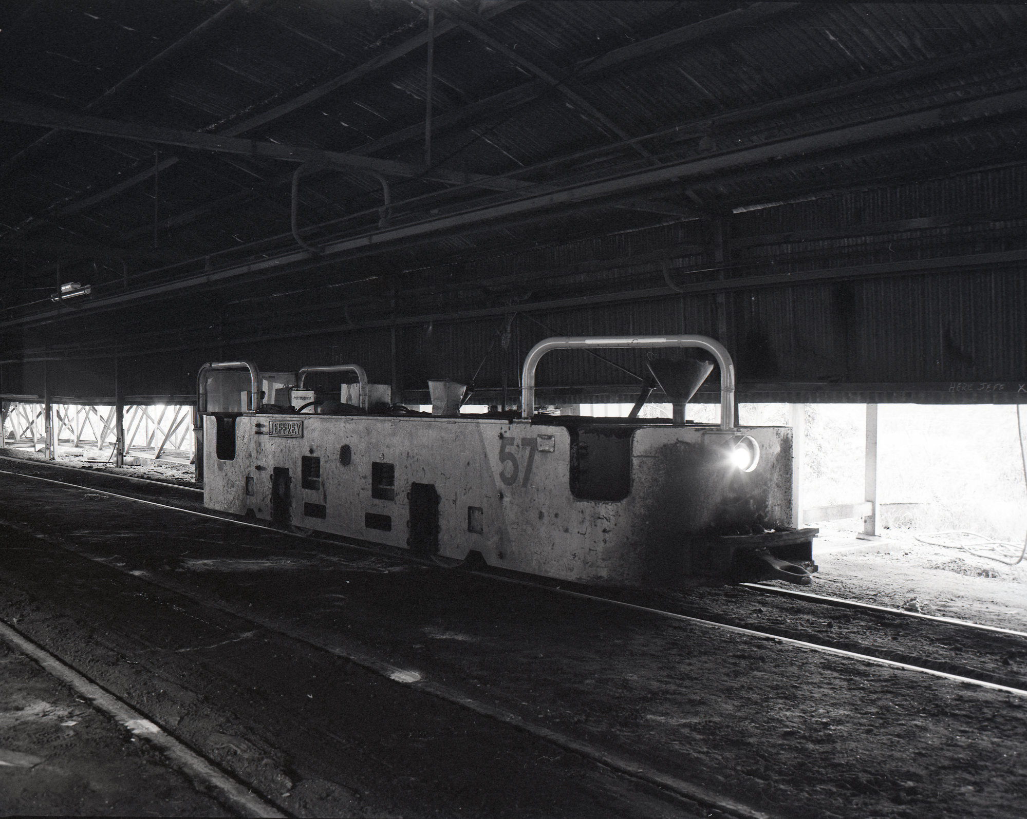 Andrews, Brian Robert, Trolley wire loco system, scenes on surface preparing locos, Stockrington No 2 Colliery, Nov 1983 (1983), [OL_BRAN403_004]. Living Histories, accessed 06/03/2026, https://livinghistories.newcastle.edu.au/nodes/view/34989