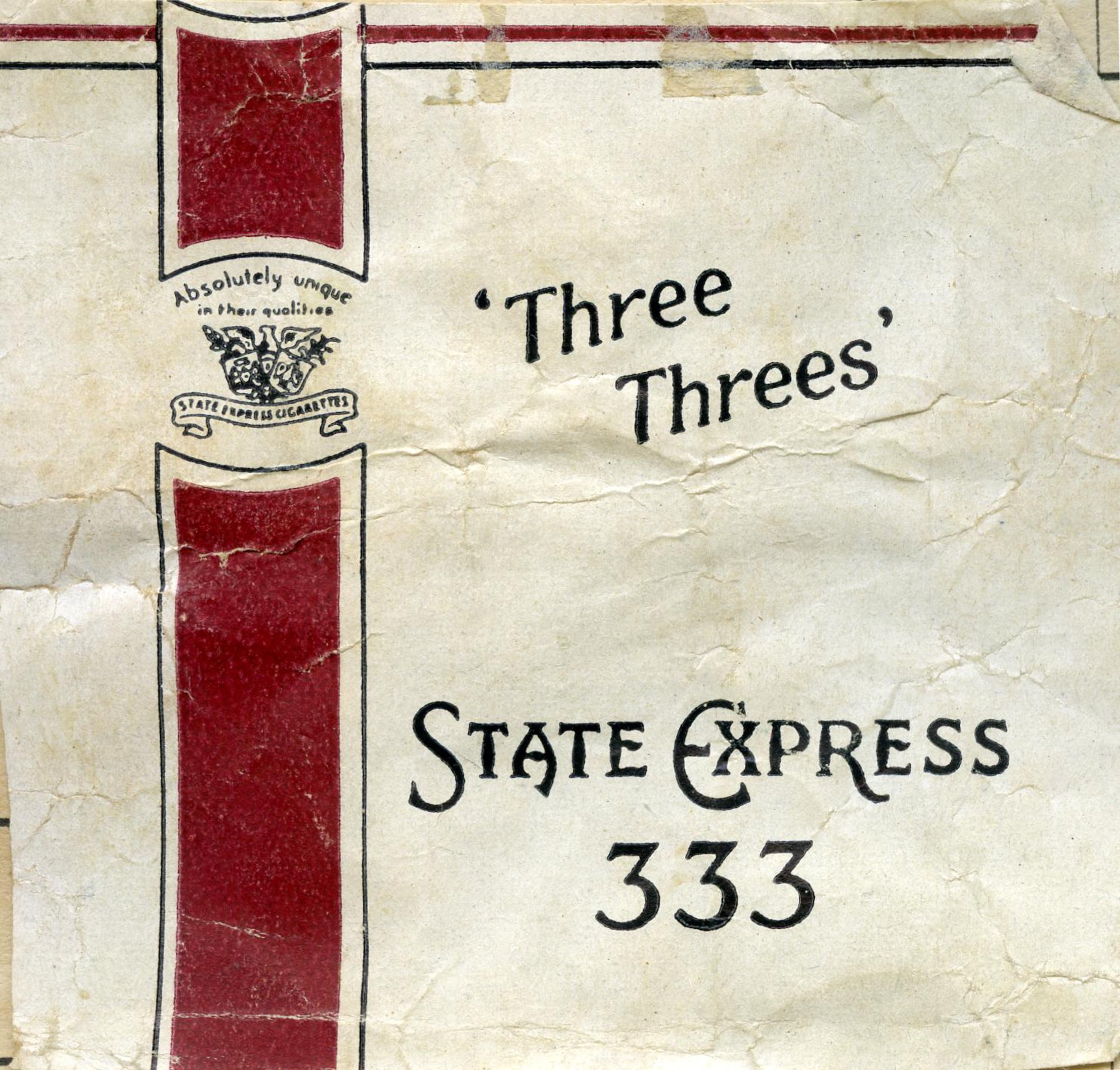 Three Threes', State Express 333 cigarettes., [GKCE-119]. Living Histories, accessed 04/04/2026, https://livinghistories.newcastle.edu.au/nodes/view/35326