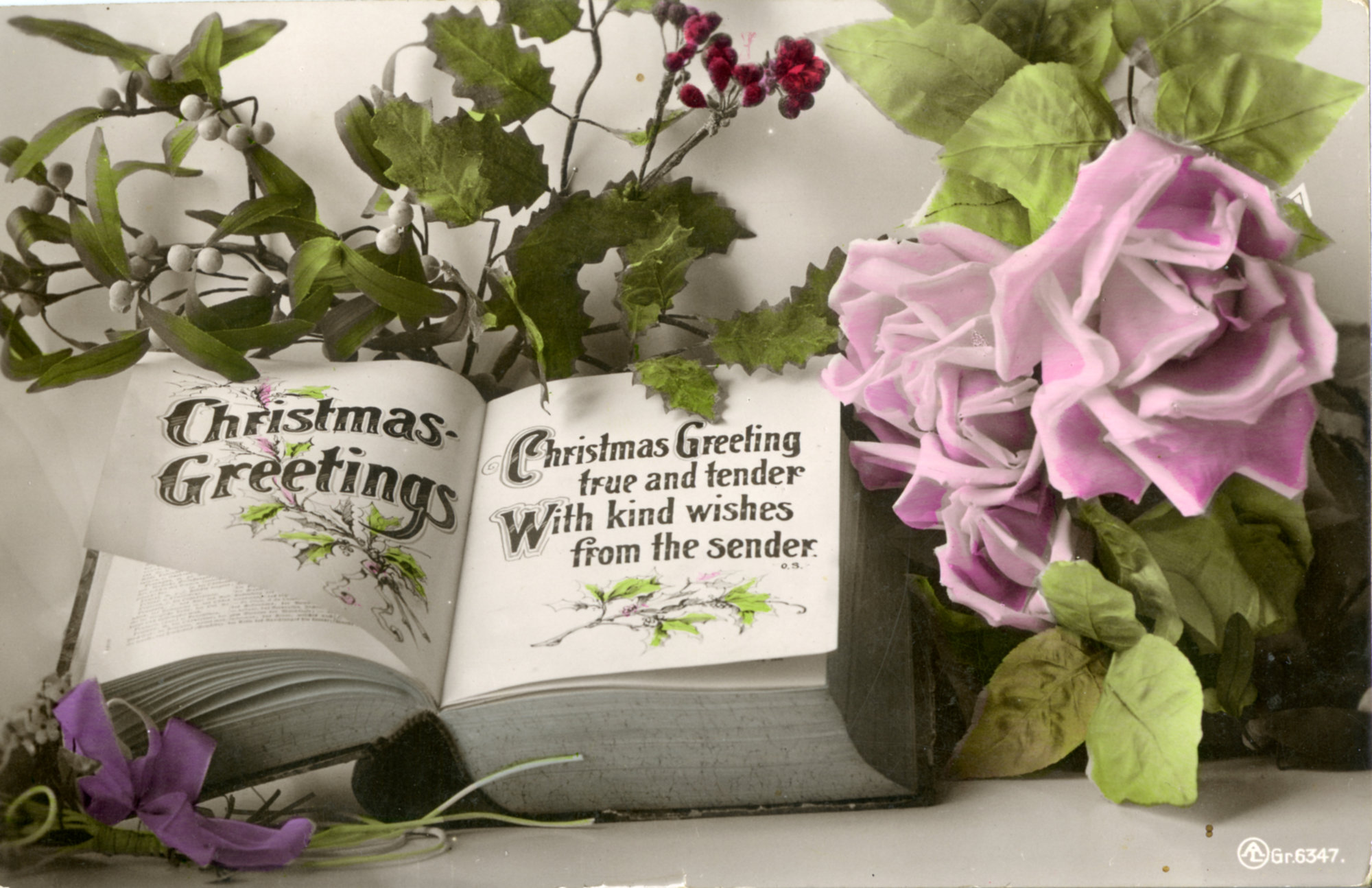 Christmas Greetings. Christmas greeting true and tender With kind wishes from the Sender. Postcard sent by Joyce [Bailey], [n.d.]