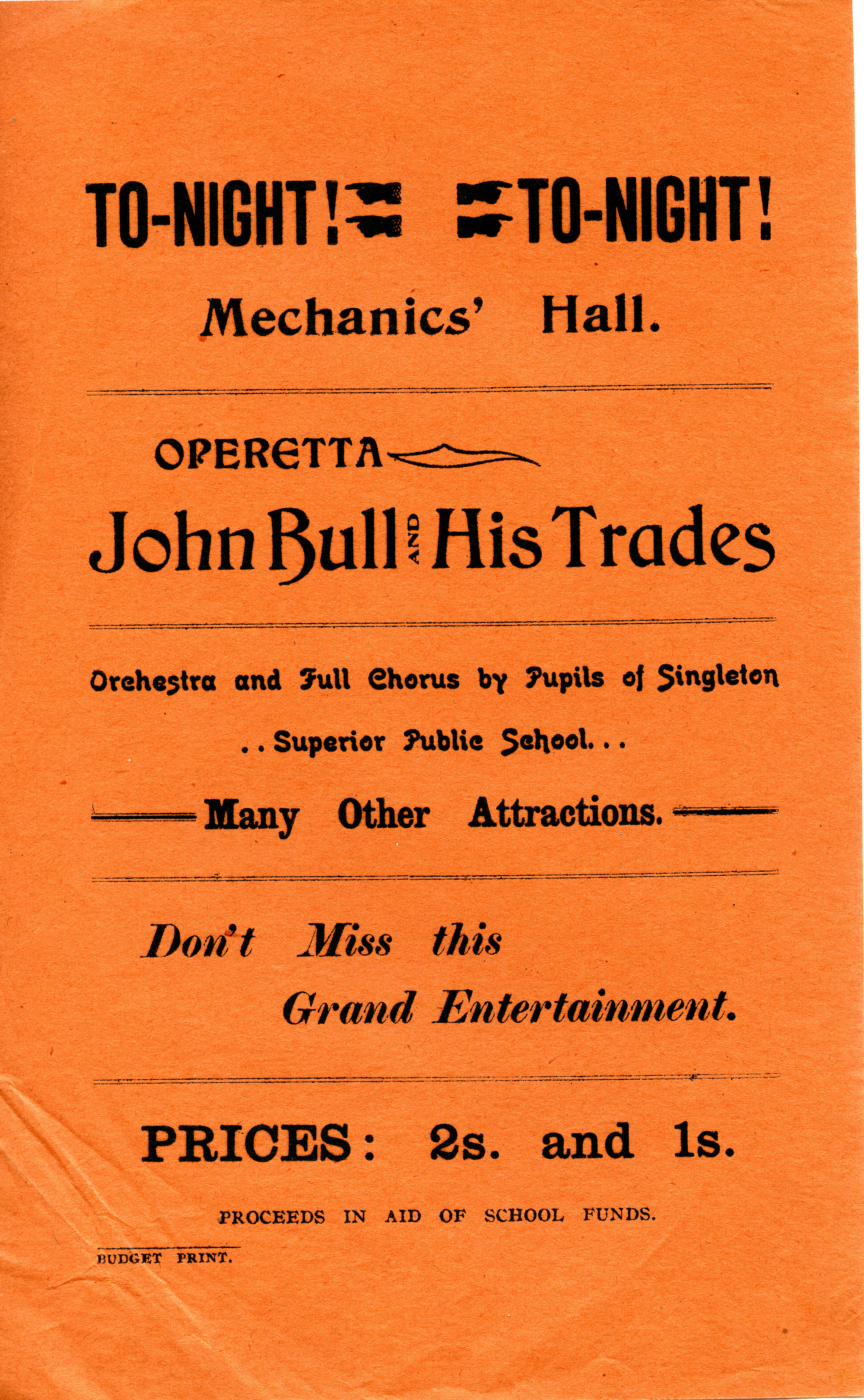 Operetta - John Bull and His Trades - advertisement, 28 March 1908 (28th March 1908), [A5059(cxvi) ]. Living Histories, accessed 15/04/2026, https://livinghistories.newcastle.edu.au/nodes/view/3551