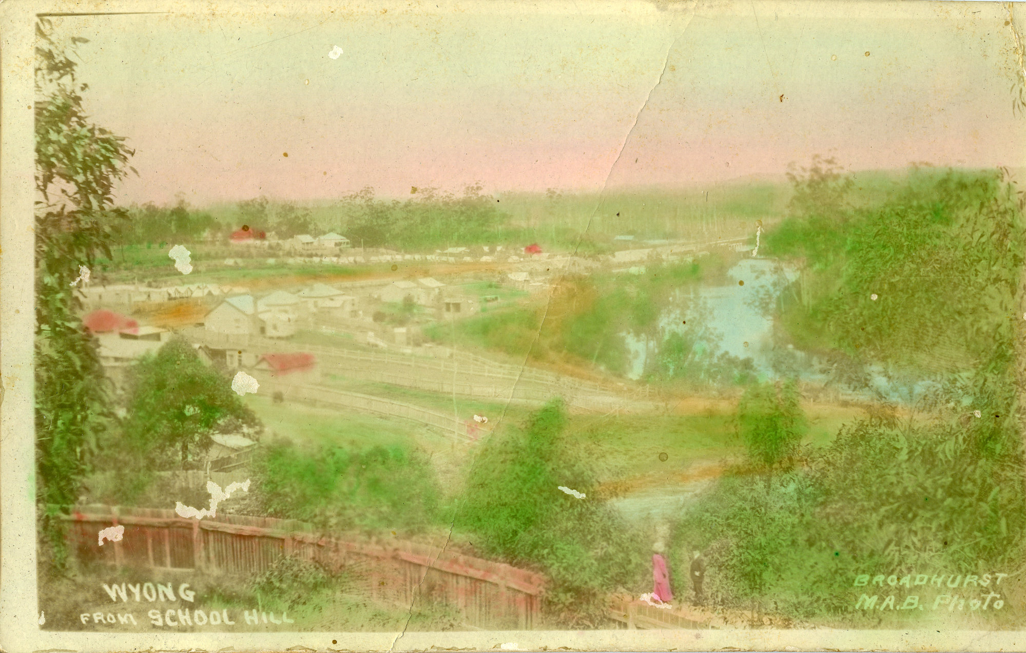 Wyong from School Hill. Postcard sent from Wyong to Miss (Lizzie) Moore, Bishop's Bridge, West Maitland by Verlie Bailey, [n.d.]