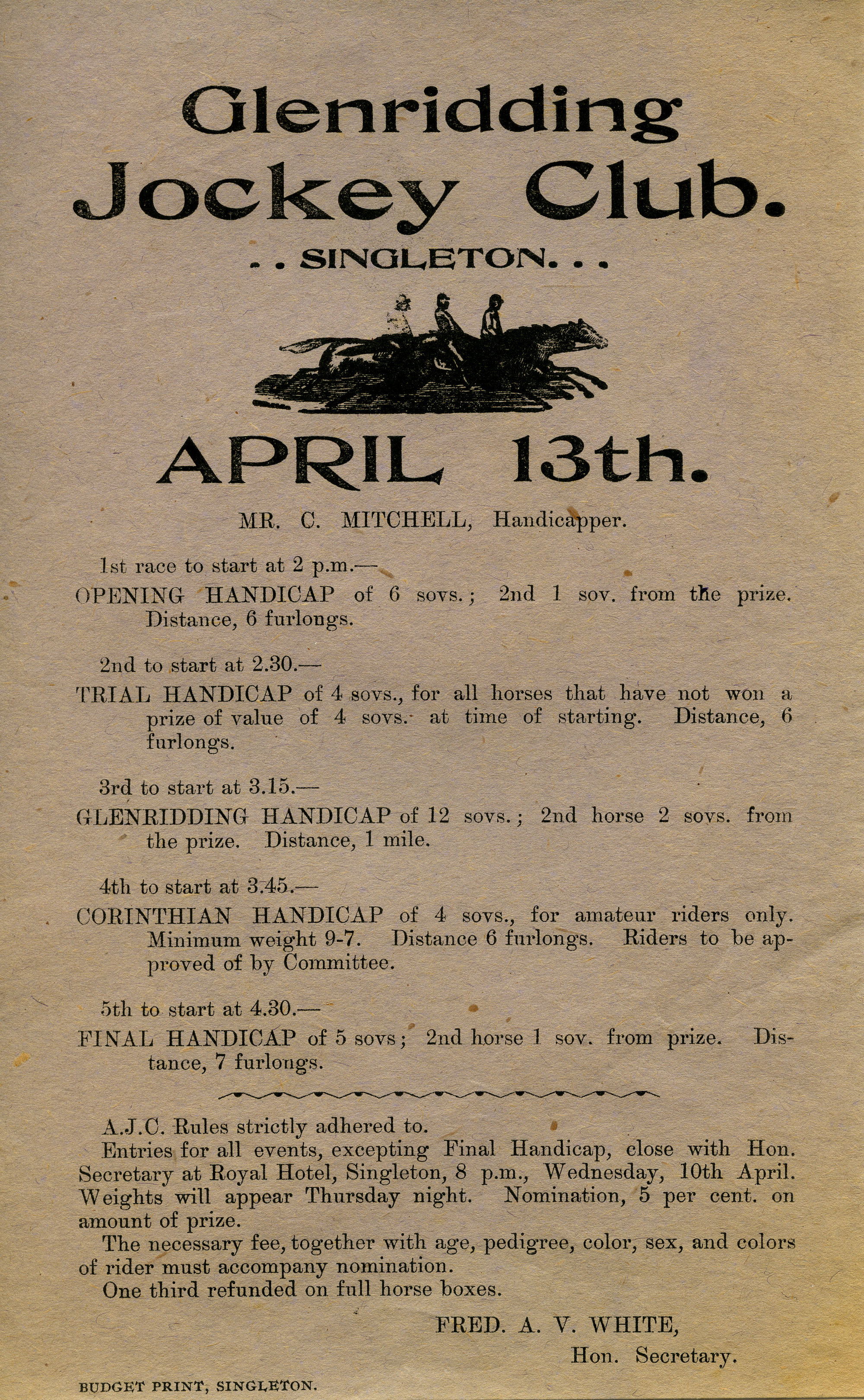 Glenridding Jockey Club, Singleton, NSW [n.y.] (13th April 1907), [A5059(cxlii) ]. Living Histories, accessed 18/03/2026, https://livinghistories.newcastle.edu.au/nodes/view/3556